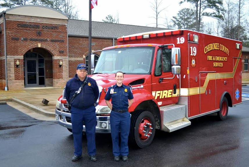 Photo: Sgt. Ben McCracken (paramedic) and Grace Robertson (EMT). Credit: Cherokee County Fire and Emergency Services