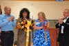 Photo 1: Celebrating the ribbon cutting for the new/replacement Dean Rusk MS at a ceremony on Tuesday, Sept. 27, 2016 are, from left to right, School Board Member John Harmon, Vice Chair Patsy Jordan, Chair Kyla Cromer and Superintendent of Schools Dr. Brian V. Hightower.