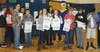 Photo 4: Showing off their grad rags in a photo with the Etowah Eagle are E.T. Booth Middle School eighth-graders, from left to right, Lance Crawford, Tristan Shirley, Taylor Grantham, Logan Drake, McKenzie Reid, Molly Foster, Jacqueline Castro, Lindsey Phillips, Ethan Henderson, Bryan Rodriguez, Chris VanSickle and Angel Jaimes.