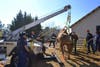 Photos 1 and 2: Crews with both Milton Fire Department and Cherokee County Fire and Emergency Services work to help the horse stand on its own.