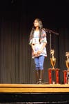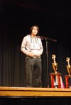 Photo 3: Sam Rowe, eighth grade from Freedom MS, spells a word during the bee.