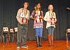 Photo 2: From left, third-place winner Sam Rowe from Freedom MS; first-place winner Sathvika Narasimhan from Mill Creek MS; and second-place winner Julia Barfield from Macedonia ES. All three spellers will advance to the GAE District Bee on Feb. 28.