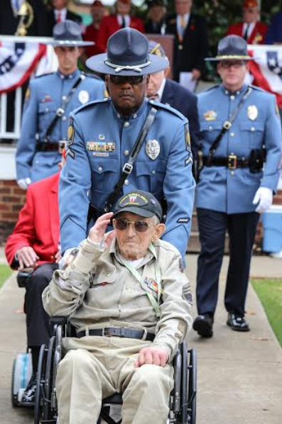 The photo captured shows Woodstock officer Keith McGraw escorting the late Chester Reeve at the city's 2015 Memorial Day service.