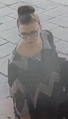Photos: a sketch of the suspect and still footage of the female “person of interest” who was at the store at the time of the armed robbery. Credit: Woodstock Police Department