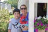 Photo 3: Clark Creek ES STEM Academy teacher Nina Eidson greets student Brayden Adams.