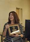 Photo 2: Wendy Cope reacts with surprise when presented the award for CCSD Media Specialist of the Year.