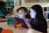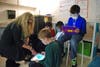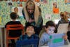 Photo 3: Woodstock ES Principal Kim Montalbano, left, watches Sydney Eidson work on an iPad.