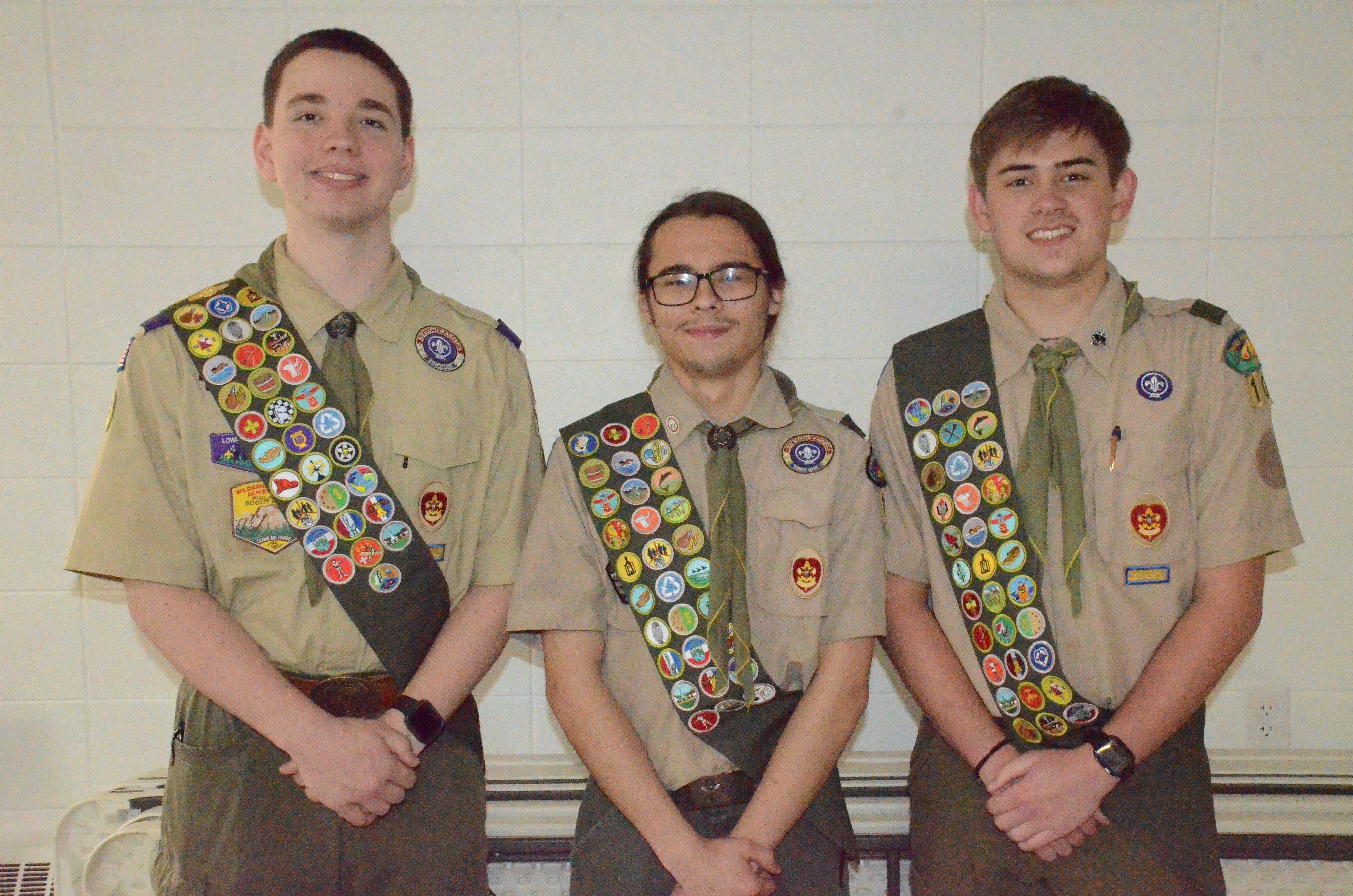 Al Benson sent in this photo he took of Luke Eley, Max Balsitis and Cameron "Cam" Weakman, who recently earned their Eagle Scout awards, at Living Hope Church in North Aurora.