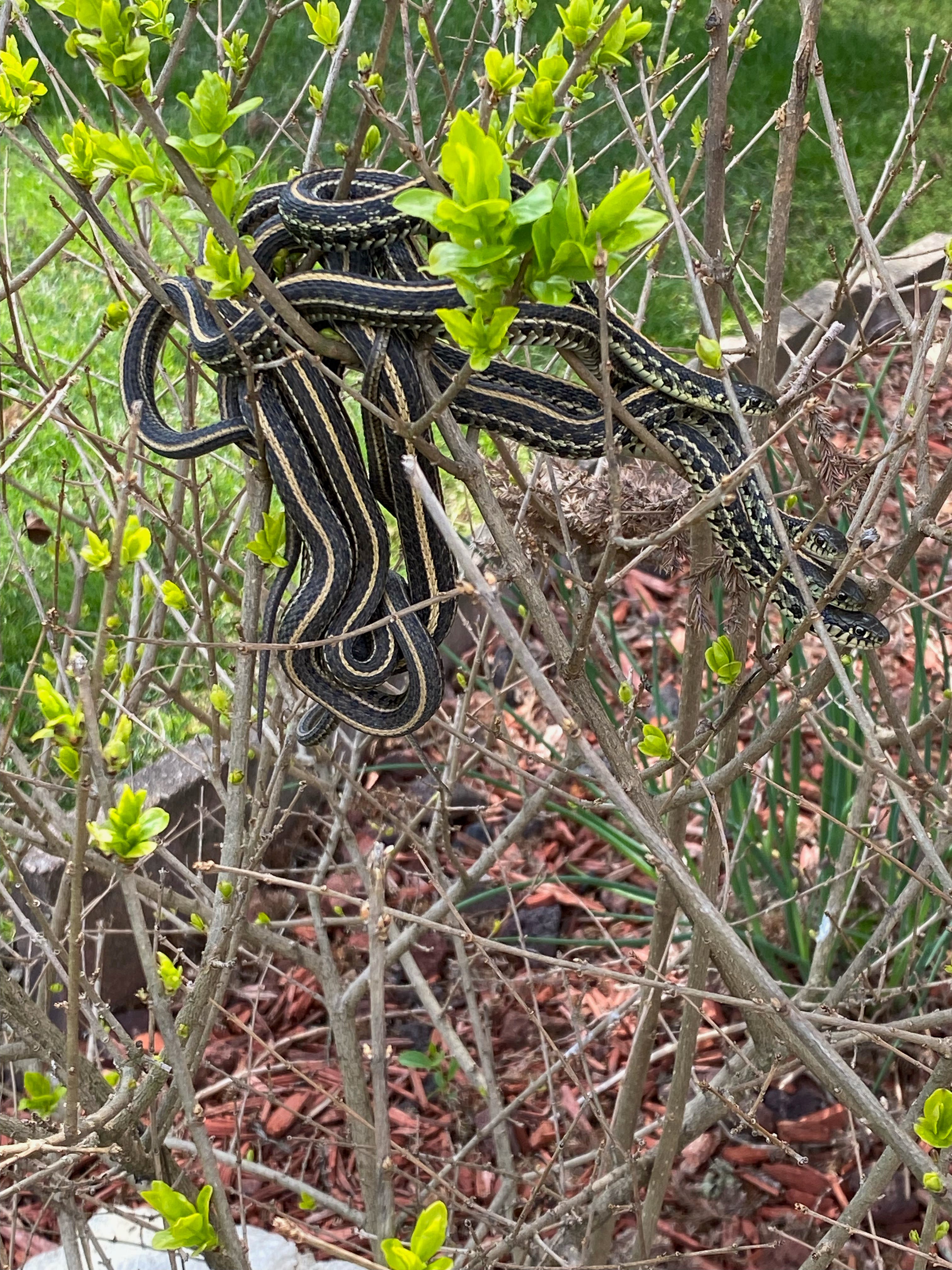 Debbie O'Shaughnessy, of Oak Forest, saw this group of snakes in her yard and grabbed a camera to get this photo. She tells us, "there were five of them initially, but by the time I grabbed my phone to get a picture, one of them slithered away. I'm told by some that it was a mom or two with their babies, and someone else said they are mating."