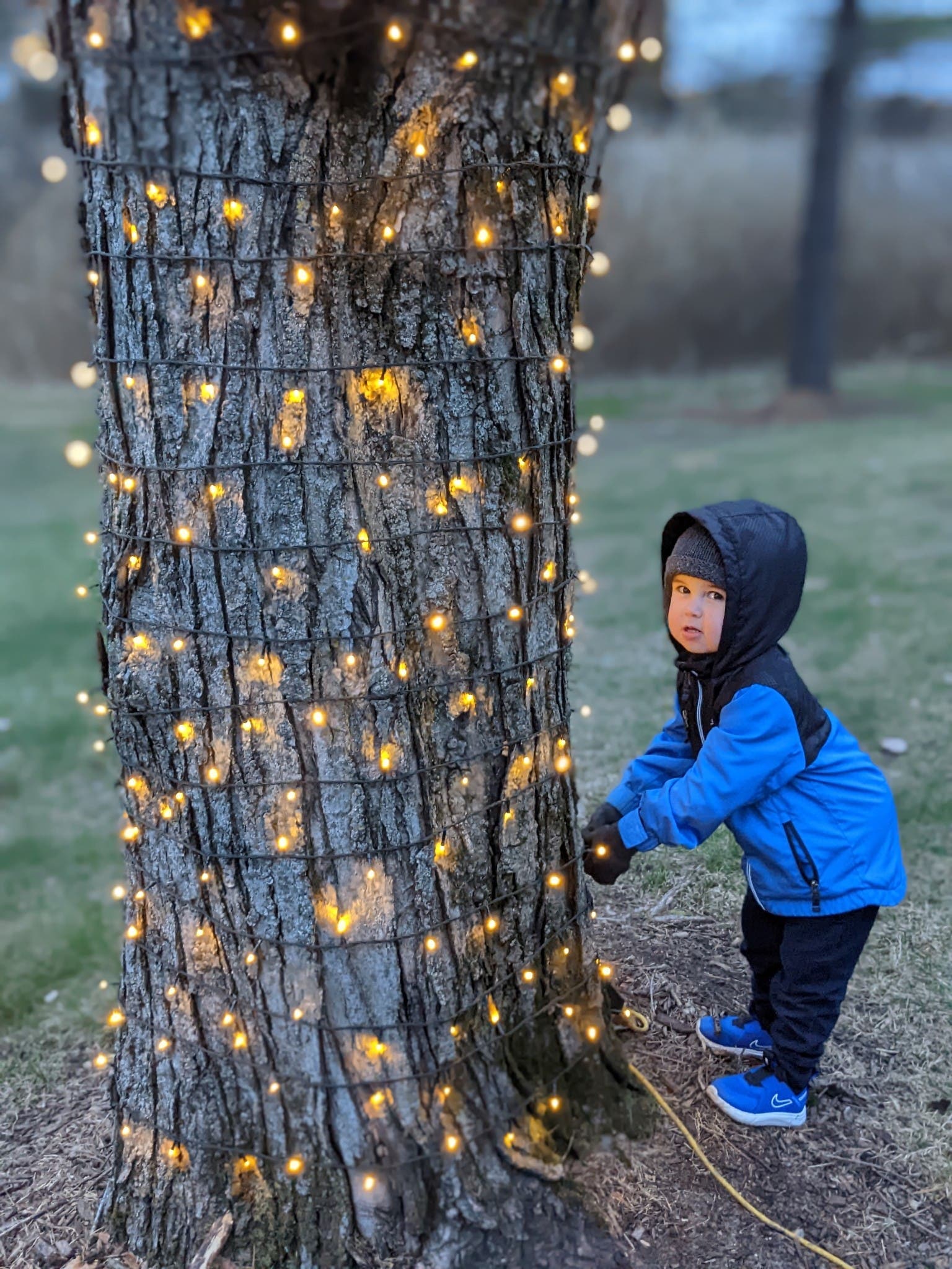 Jim Kresach, of Flossmoor, photographed his grandson "twinkling the lights" in the backyard.