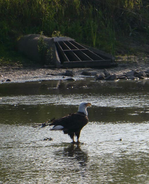 Sue Marines got this great shot of an eagle in a pond area by the west fork at the Techny Basin.