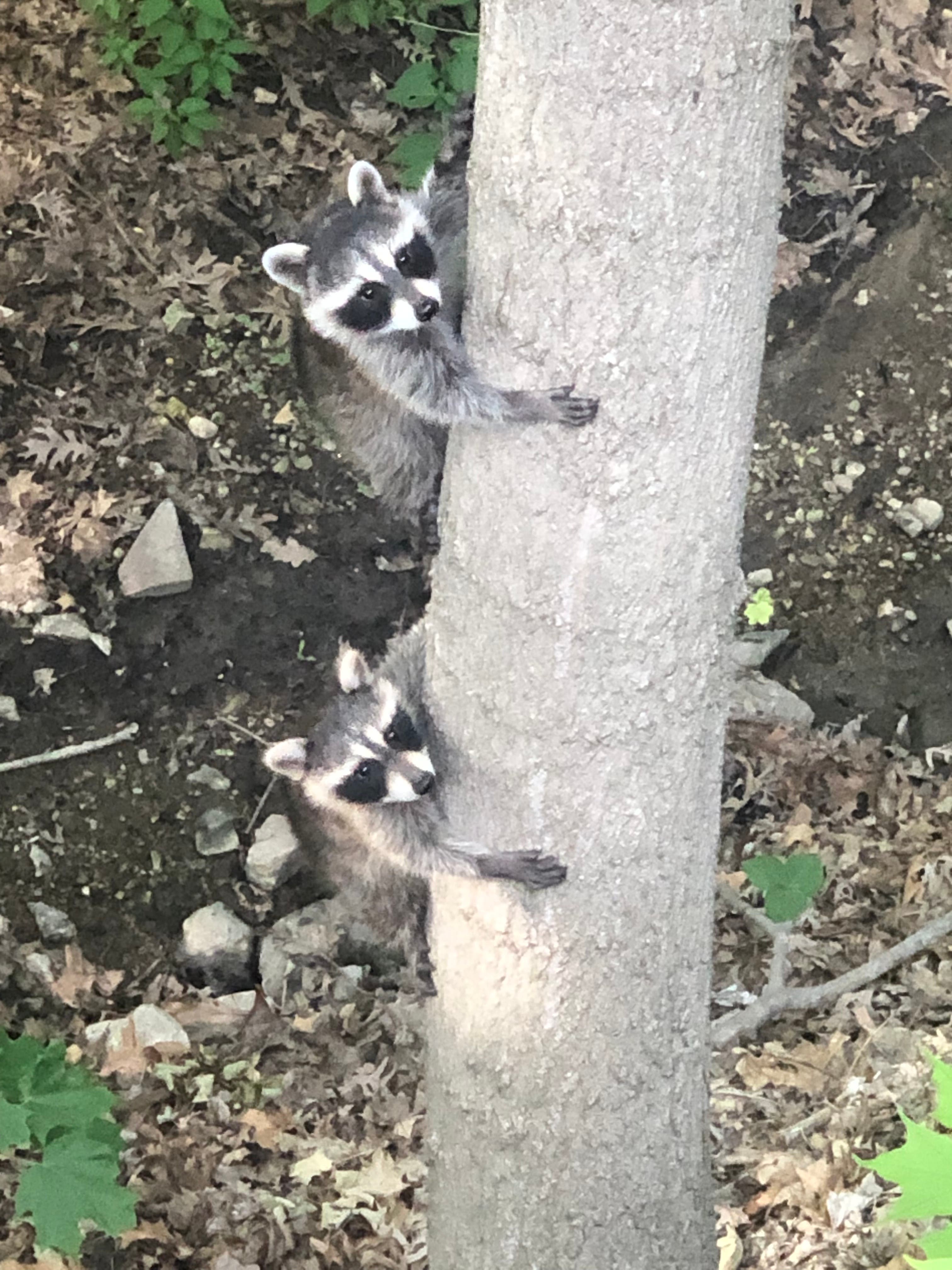 Kathy Musselman, of Lemont, saw a mama raccoon teaching her babies how to climb trees and grabbed the camera for this amazing photograph.