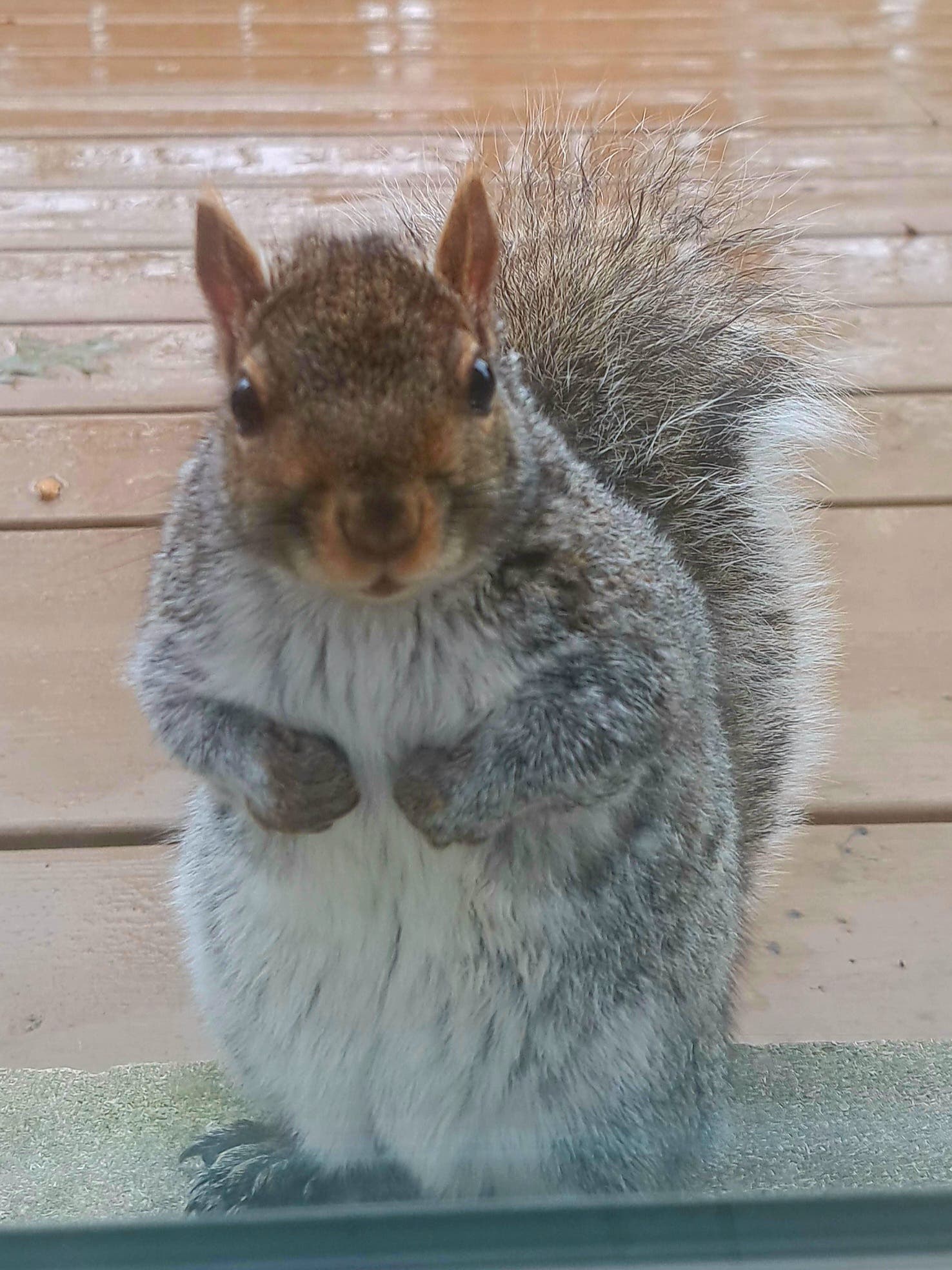 Joe Kloptowsky, of Tinley Park, tells us this squirrel was begging for more nuts.