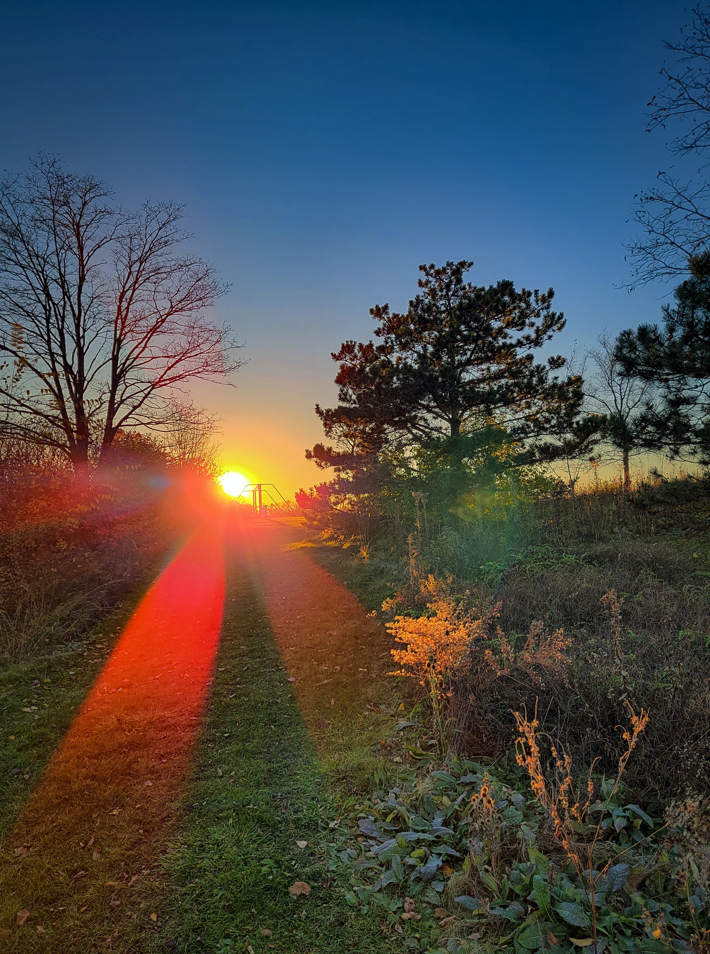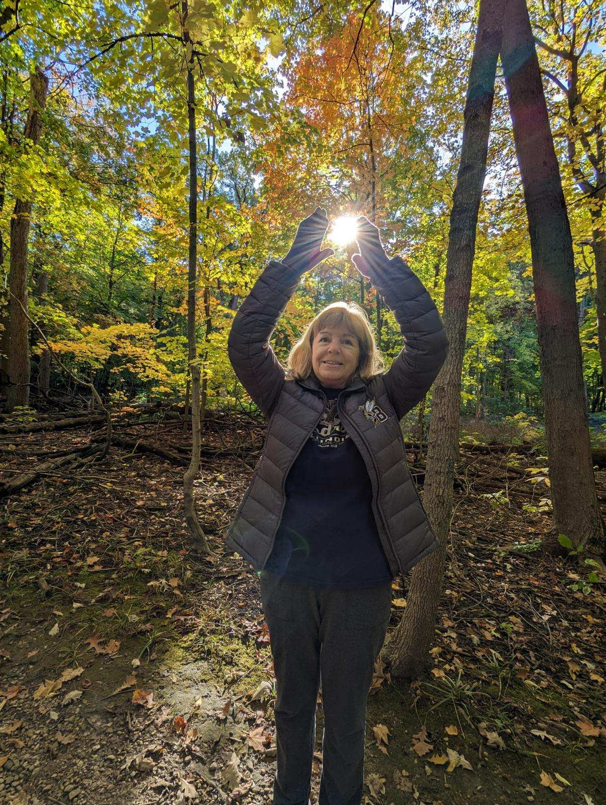 Steven Collins captured this photograph of his wife, Trudy, sun-chasing at Maple Grove Forest Preserve in Downers Grove.