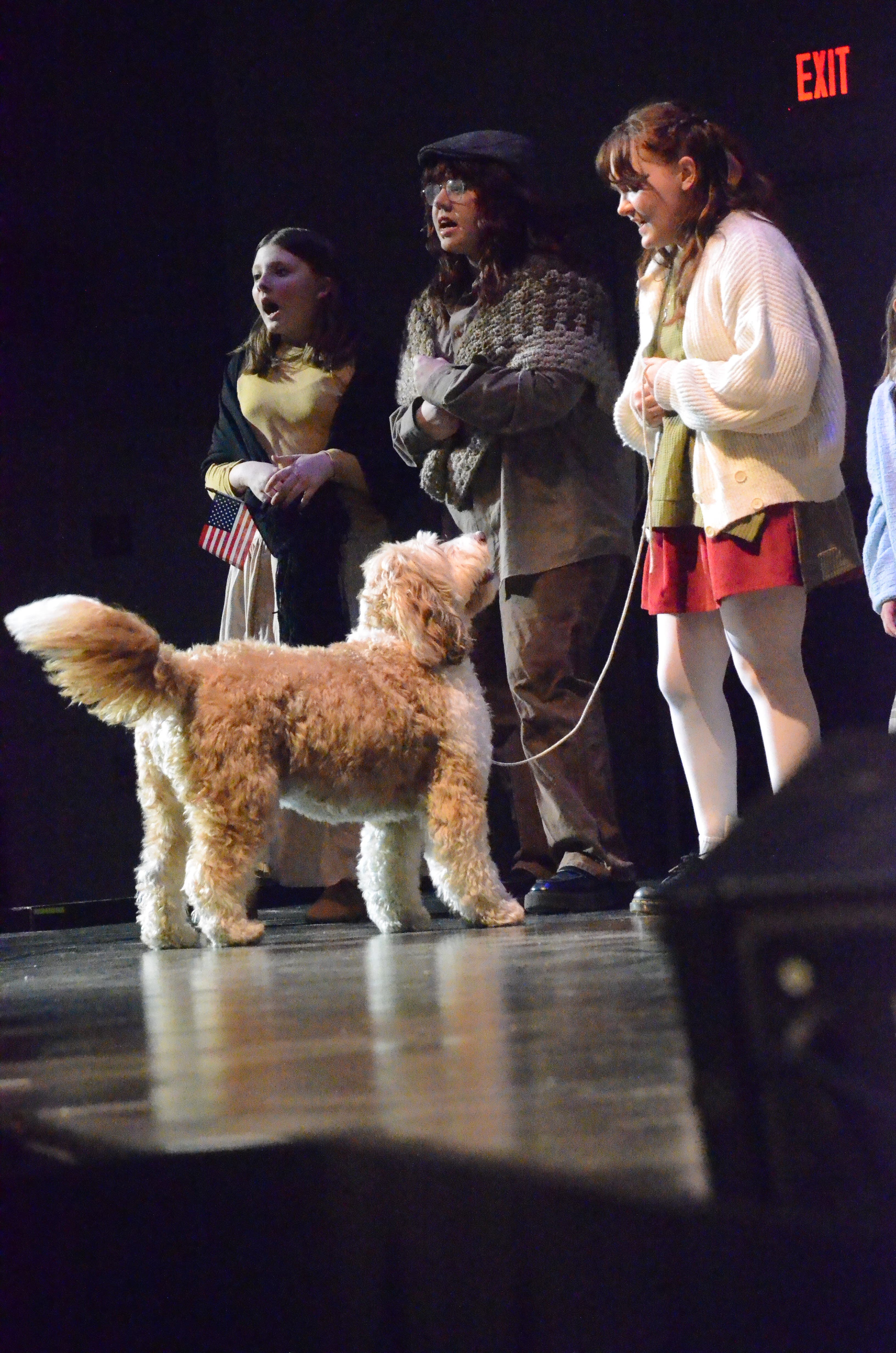 Al Benson said this dog, Tilly, was stealing the show portraying Sandy in "Annie the Musical!" at Aurora Central Catholic High School. Annie (right), is being played by Catie Houck, of Aurora, who owns Tilly.