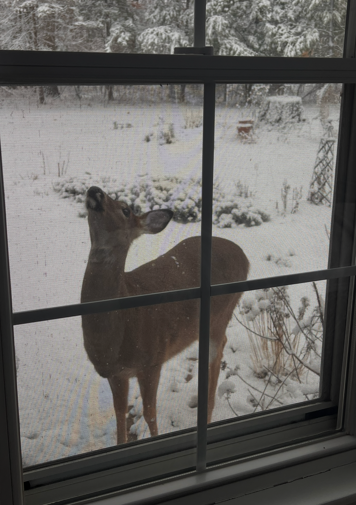 Lois Mayer, of Homer Glen, was having winter memories when she sent us this amazing photo of "my deer on our front porch when it was snowing," she tells us.