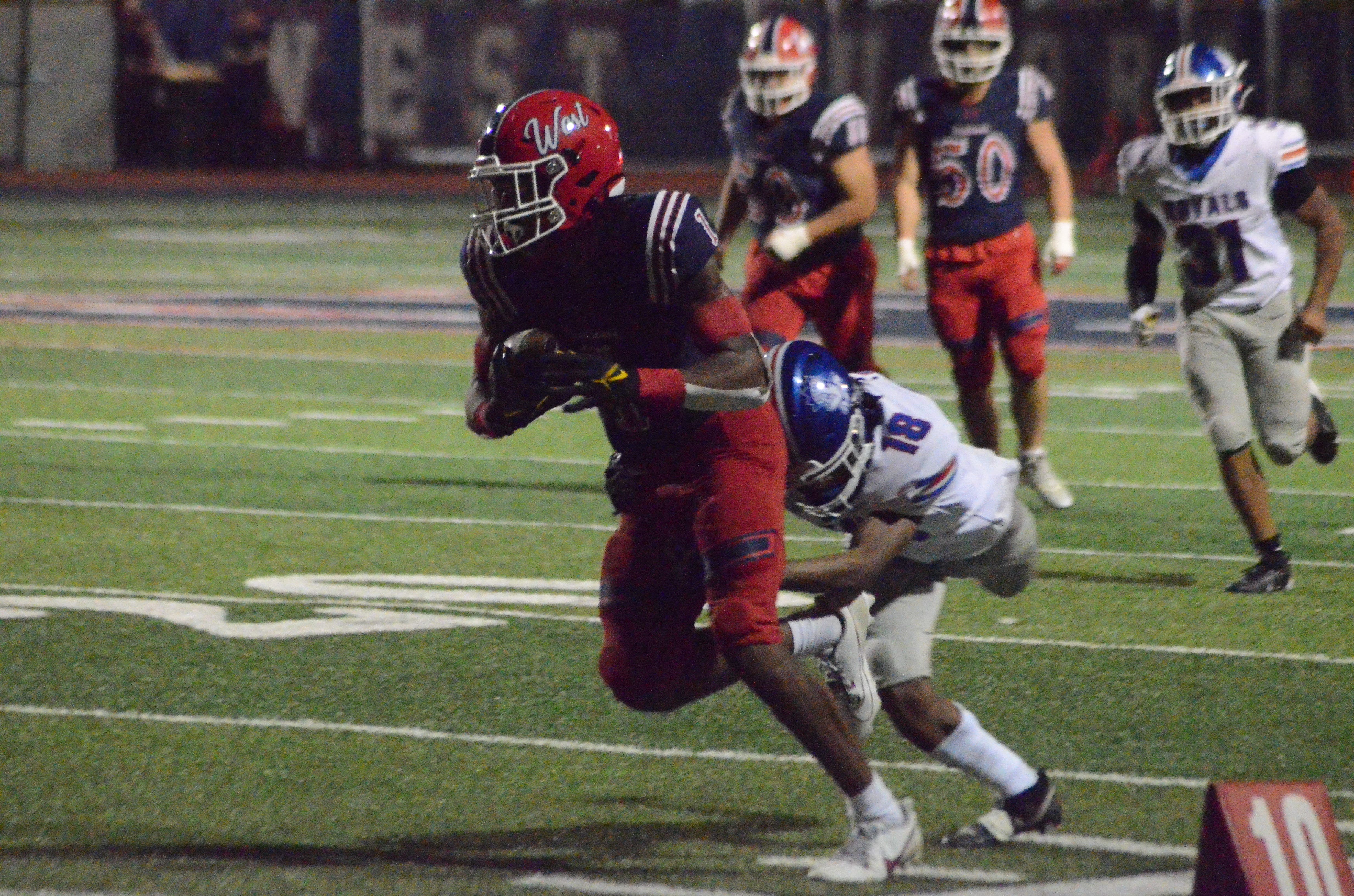 Al Benson submitted this photo he took of West Aurora High School's Terence Smith (1) eluding a tackle by Elgin Larkin's Jacen Martin (18) for a first quarter touchdown during the Blackhawks' 57-0 win in Friday night football at Aurora.