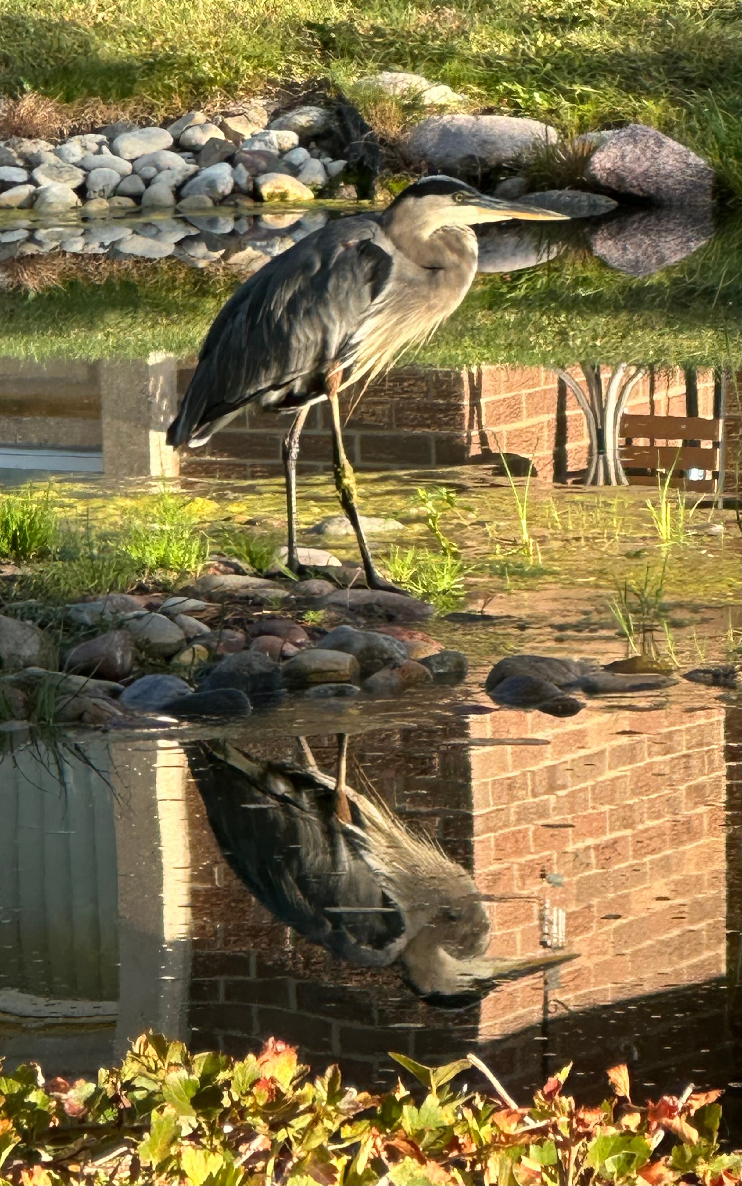 Bill Schultz, of Geneva, sent in this photograph of a Grey Heron patiently waiting for its breakfast to swim by in a pond in Oakbrook.