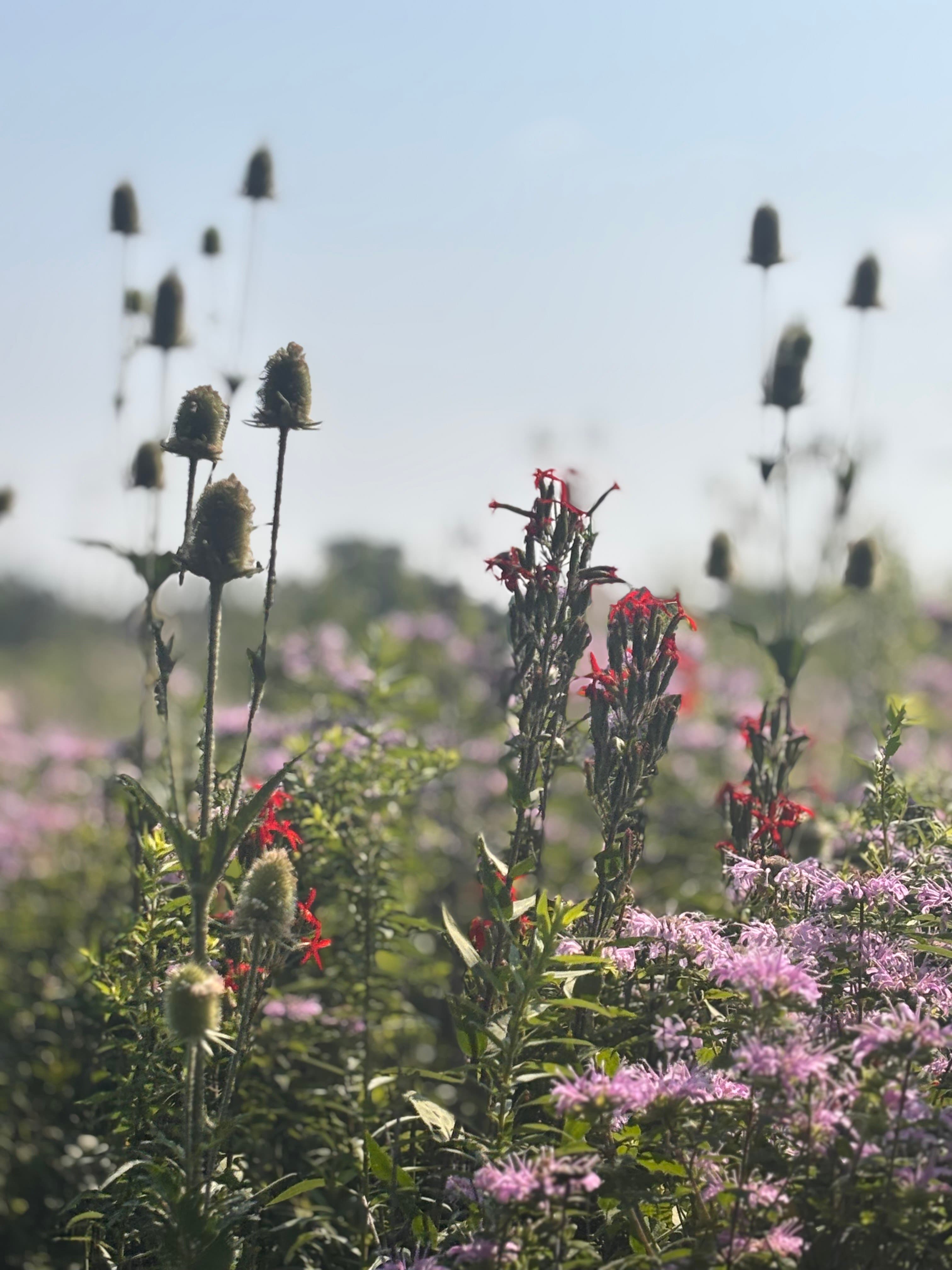 Veer Lavingia sent in this photograph of some flowers at Eldridge Park in Elmhurst. "The soft, late morning sun brings out the contrast in the late summer wildflowers. The red petals and the interestingly-shaped green teasels along with the purple flowers create a certain delicate balance," she tells us.