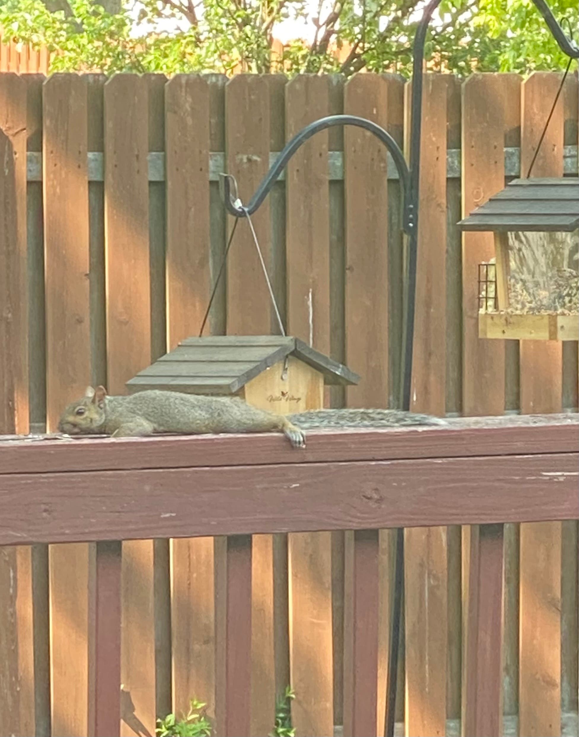 Rachel Real, of Hampshire, photographed this squirrel that had just raided her bird feeder and needed a rest.
