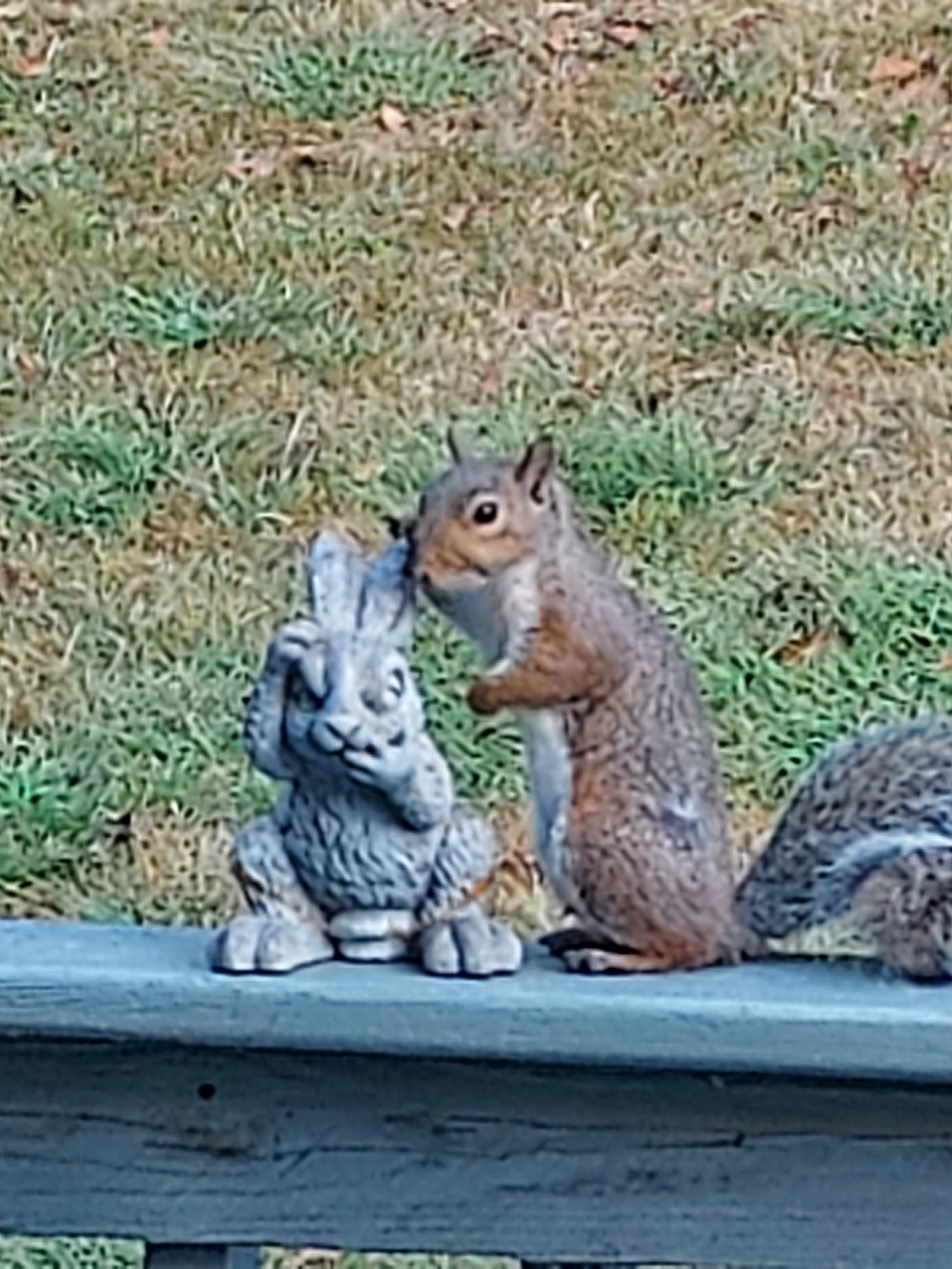 Terri Sikorski, of St. Charles, grabbed her camera and photographed this squirrel off her deck. She said, "It looks like the squirrel is telling the rabbit where he hid his stash."