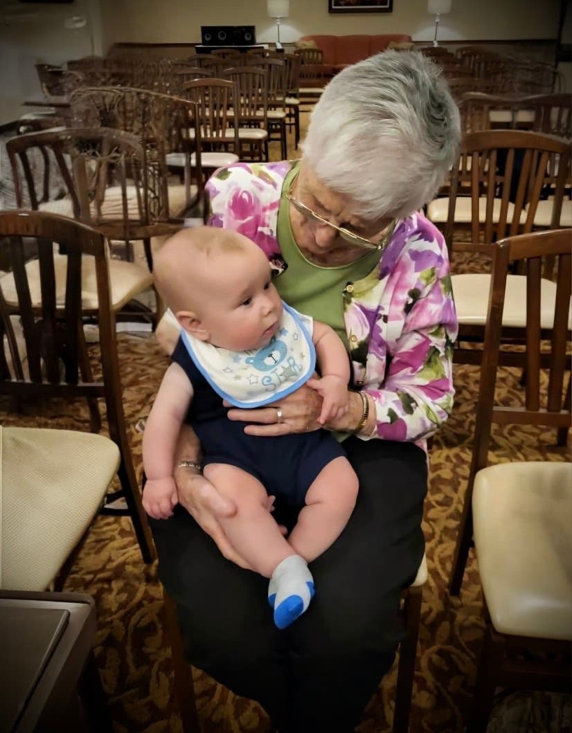 Great-great aunt Molly Glog, 93, the eldest of the Murphy family, is seen here with Logan Gilmer, 4 months old, the youngest member of the family. "Age definitely has no effect in the bond these to have," said Rita McGann, who submitted the photograph.