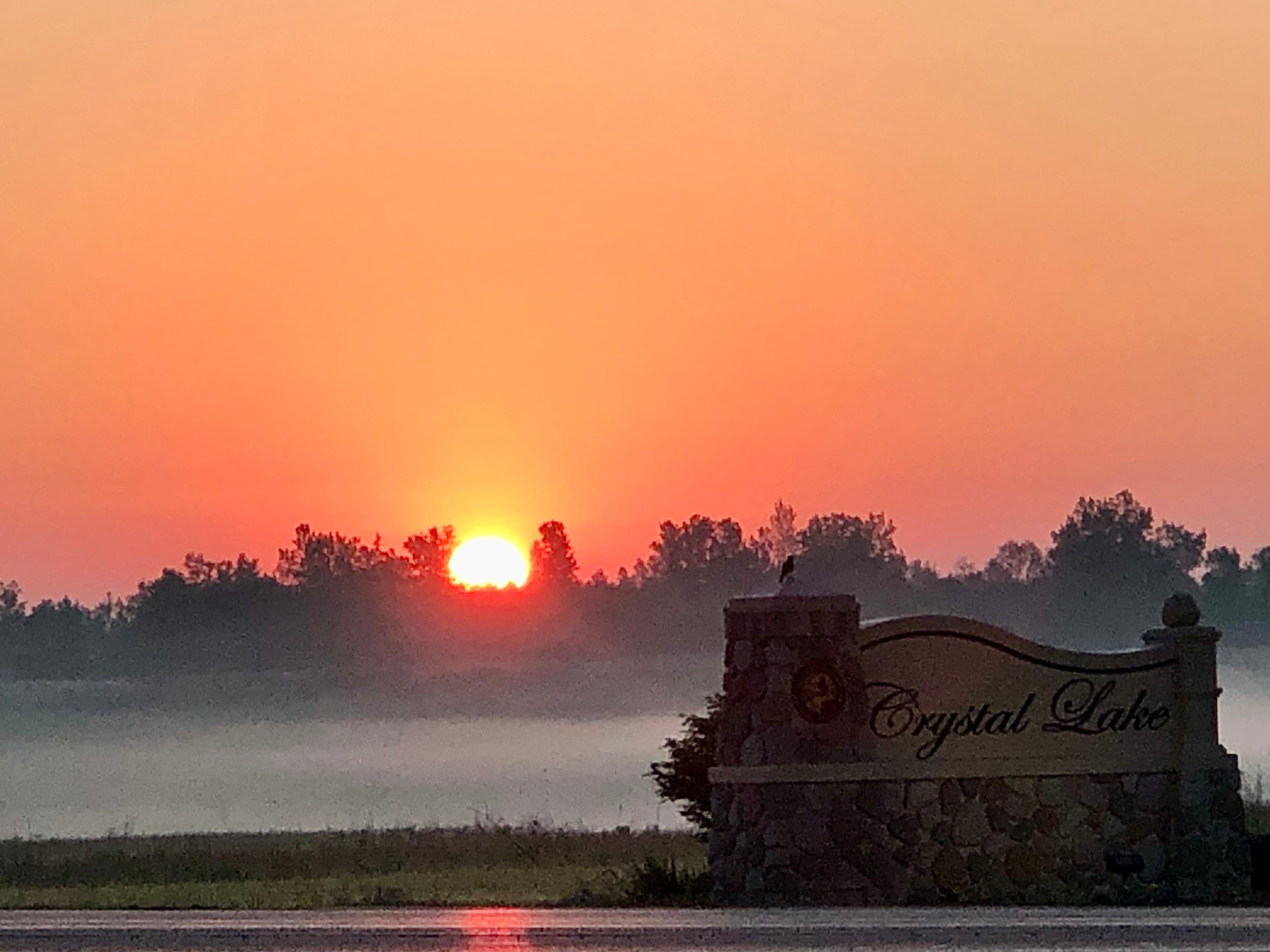 Claudine Kerber captured this image of the sun overlooking the Crystal Lake sign.