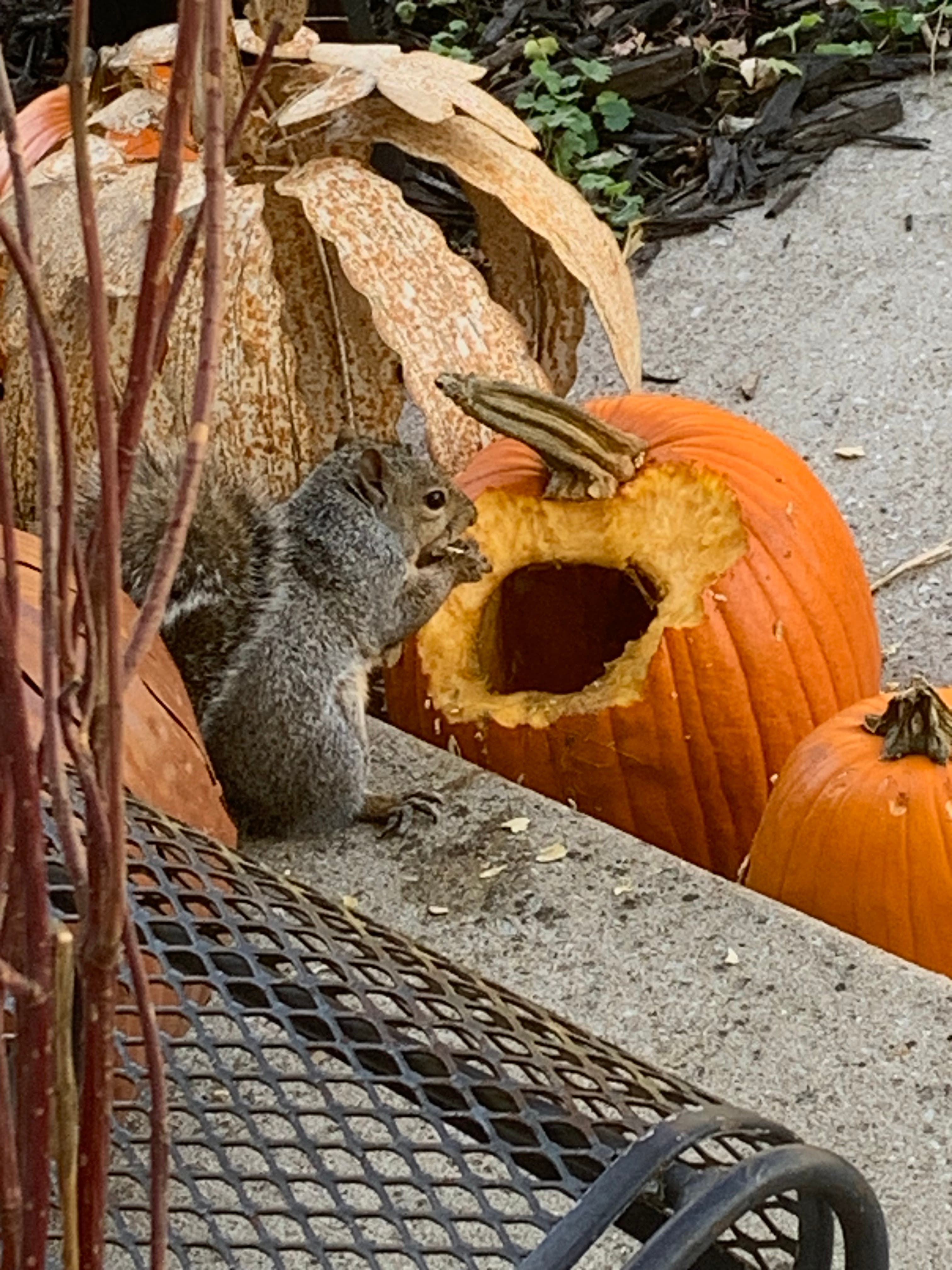 Carol Buss, of Tinley Park, caught this squirrel eating her pumpkin.