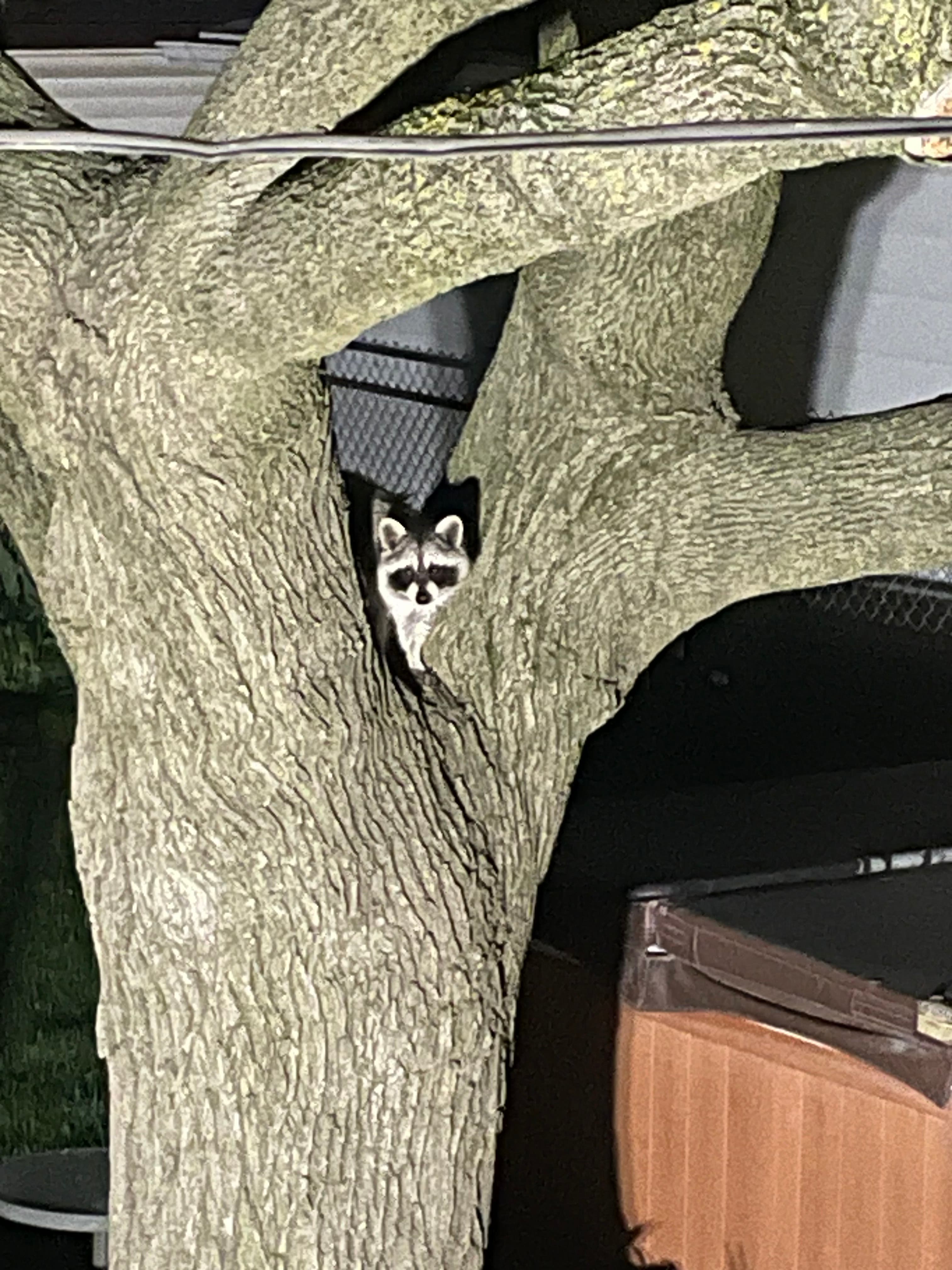 Laura Haddadin, of Brookfield, found this raccoon in her backyard and took a photo from her window. "My light went off at 2 a.m. and I found out why," she tells us.
