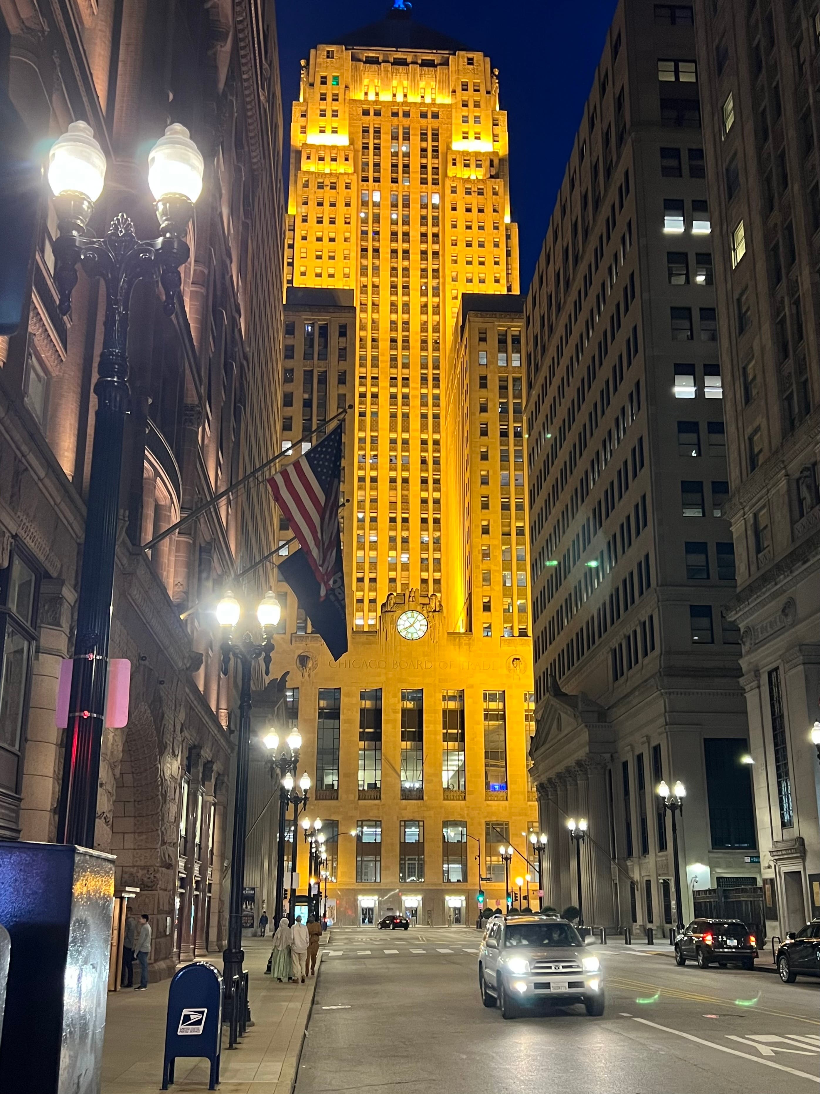 Russ Sharp recently photographed the Chicago Board of Trade building at night.