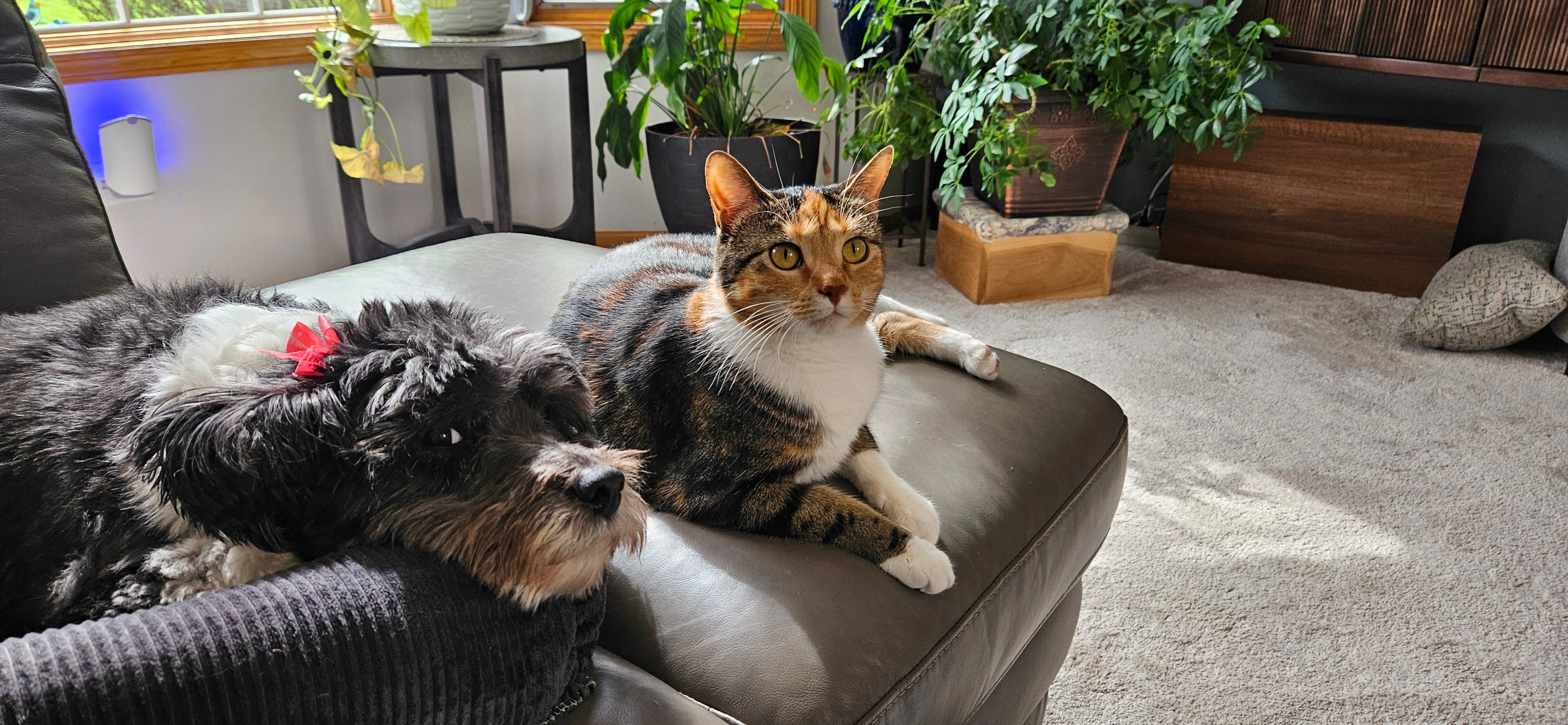 Donna Mazalin, of Palos Heights, photographed her cat, Pia, getting "as close as she can get" to her dog, Dolly.