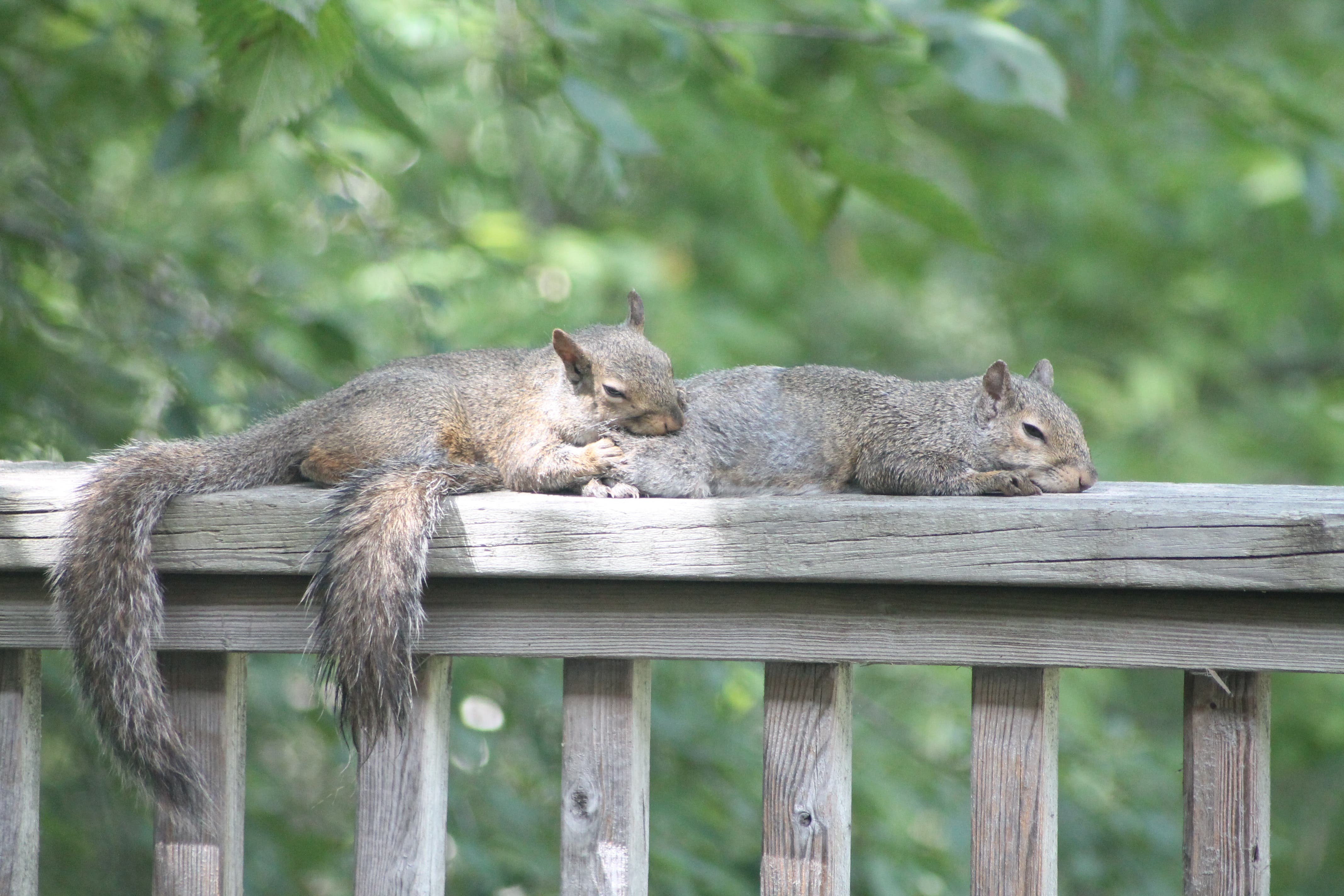Susan Dunnett, of Woodstock, took this photo of some snuggly squirrels snoozing in her backyard. She said it was too hot for them to chase each other.