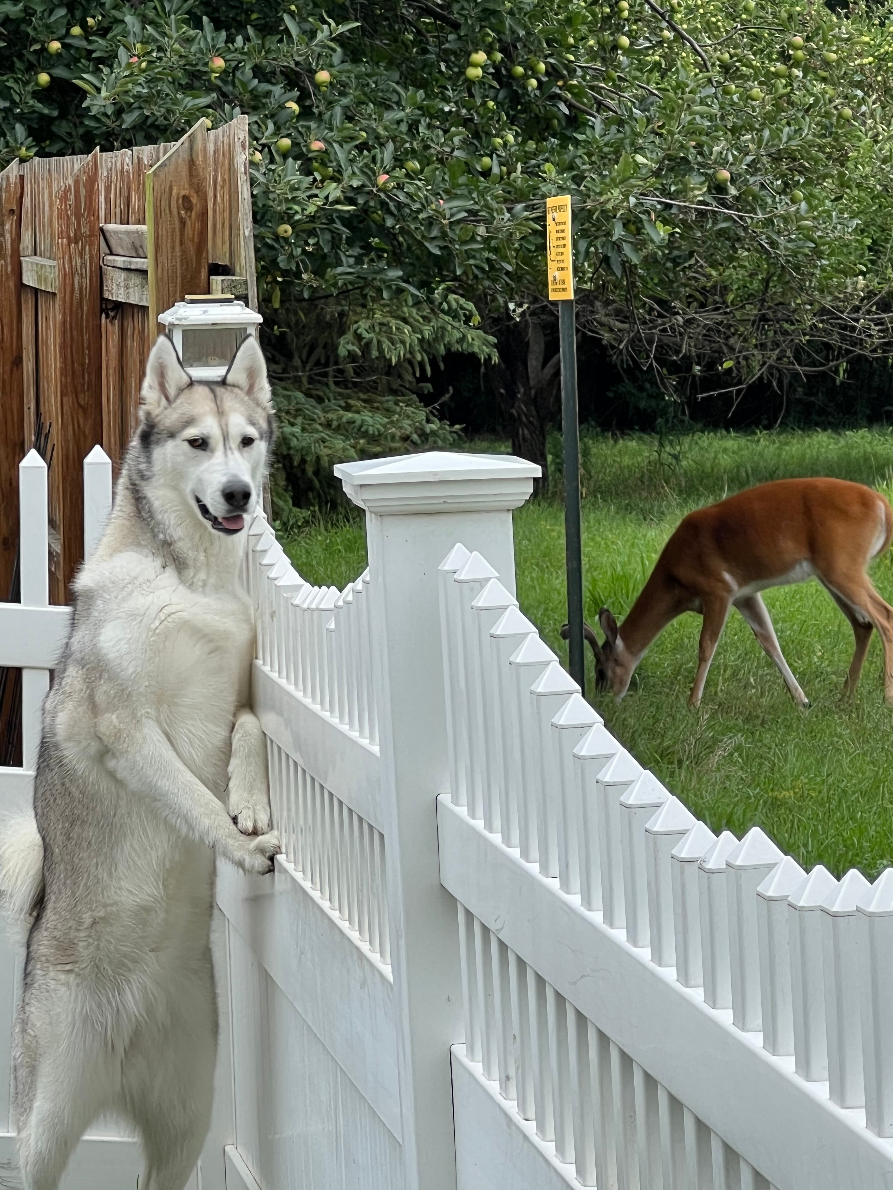 Judy Dutkiewicz photographed this standing dog checking out some deer behind her house at Theodore Marsh in Crest Hill.