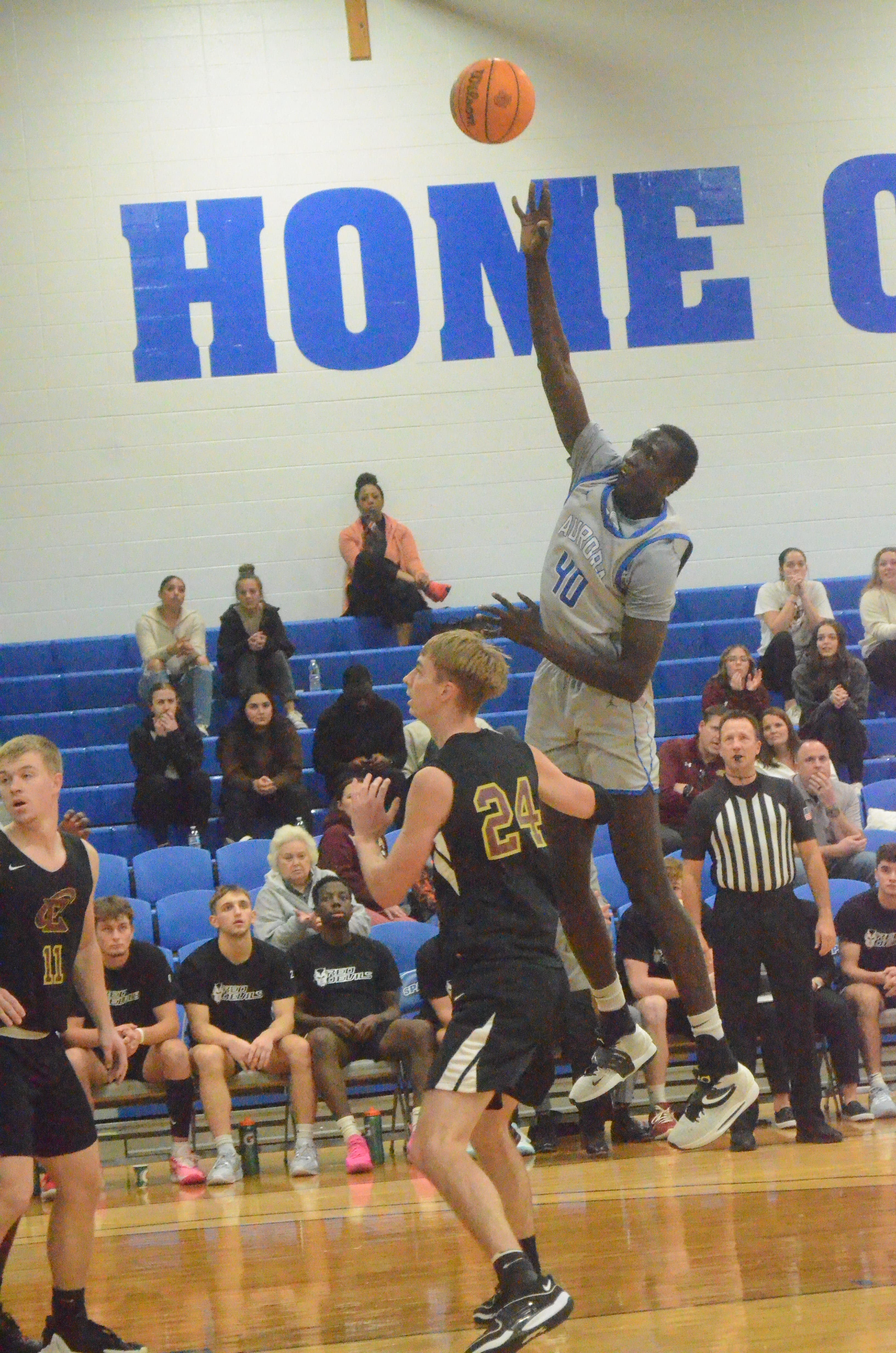 Al Benson sent us this sports photo he got of Aurora University senior center Atem Chol. The 7-foot-1 player is a native of South Sudan in northeast Africa. Aurora won the season-opener over Eureka College, 86-61.