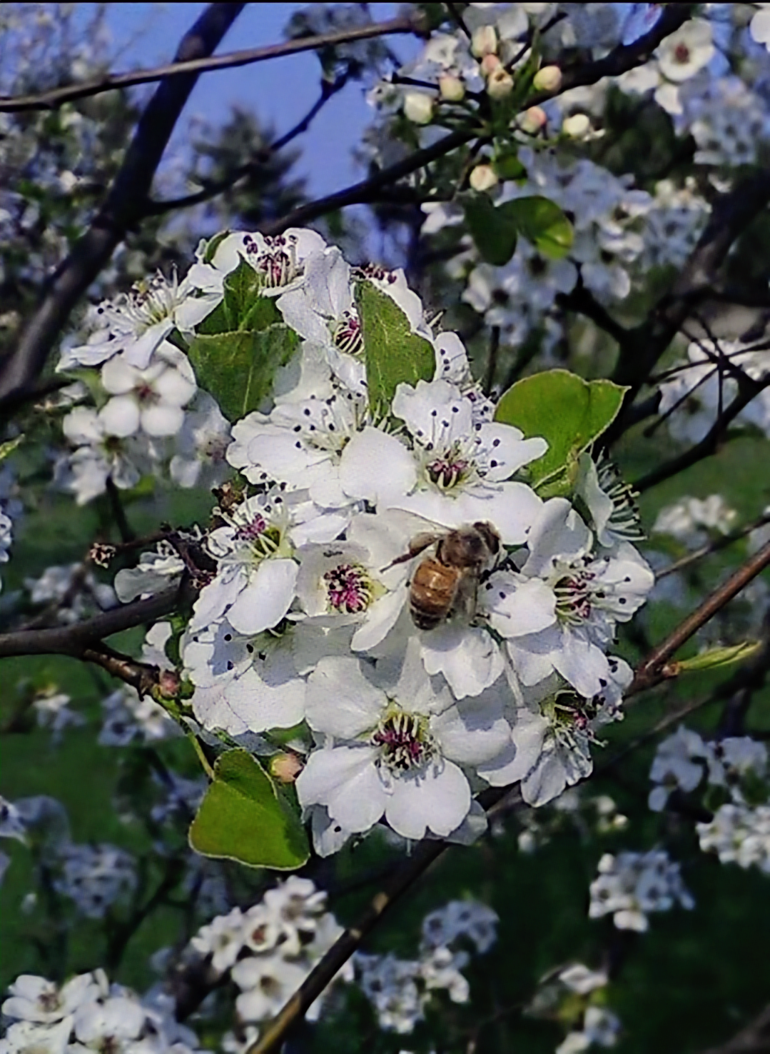 Betty Bogda got this great shot of a honey bee on a pear tree blossom in Yorkville.