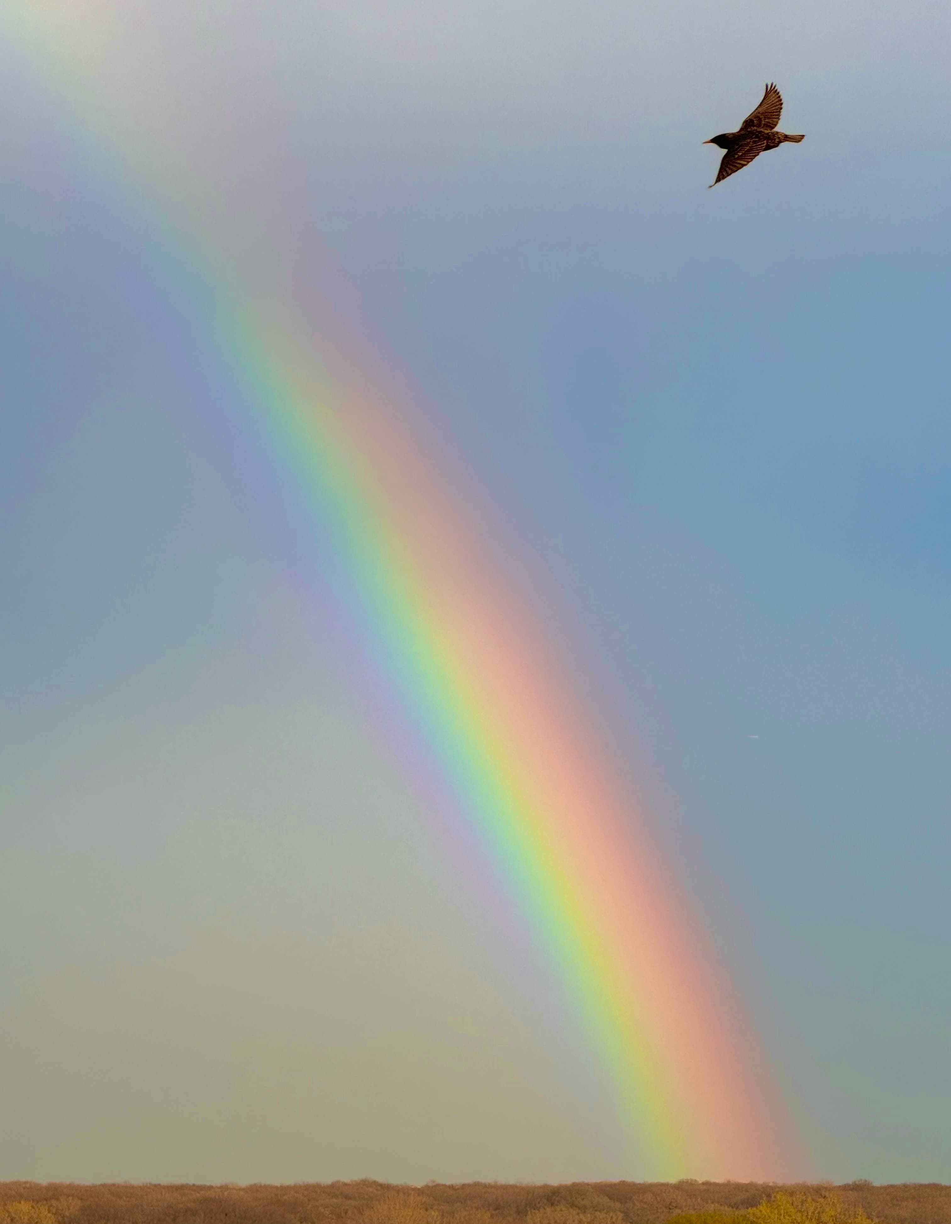 Judith Salstone captured this image of a bird flying by a rainbow in Wheeling.