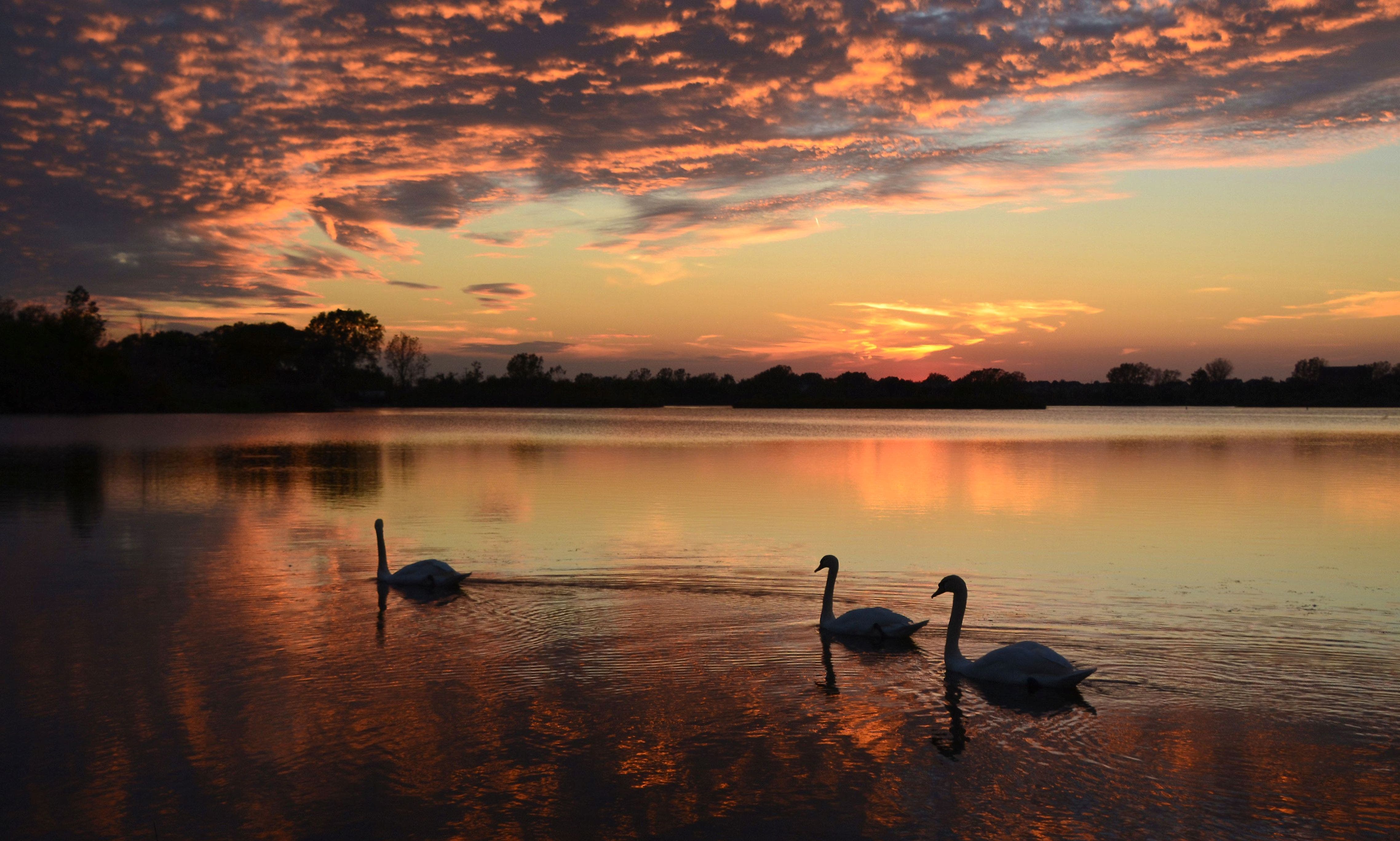 Edward Donahue grabbed his camera and took a photo of these swans at sunset at Lake Centennial in Orland Park.