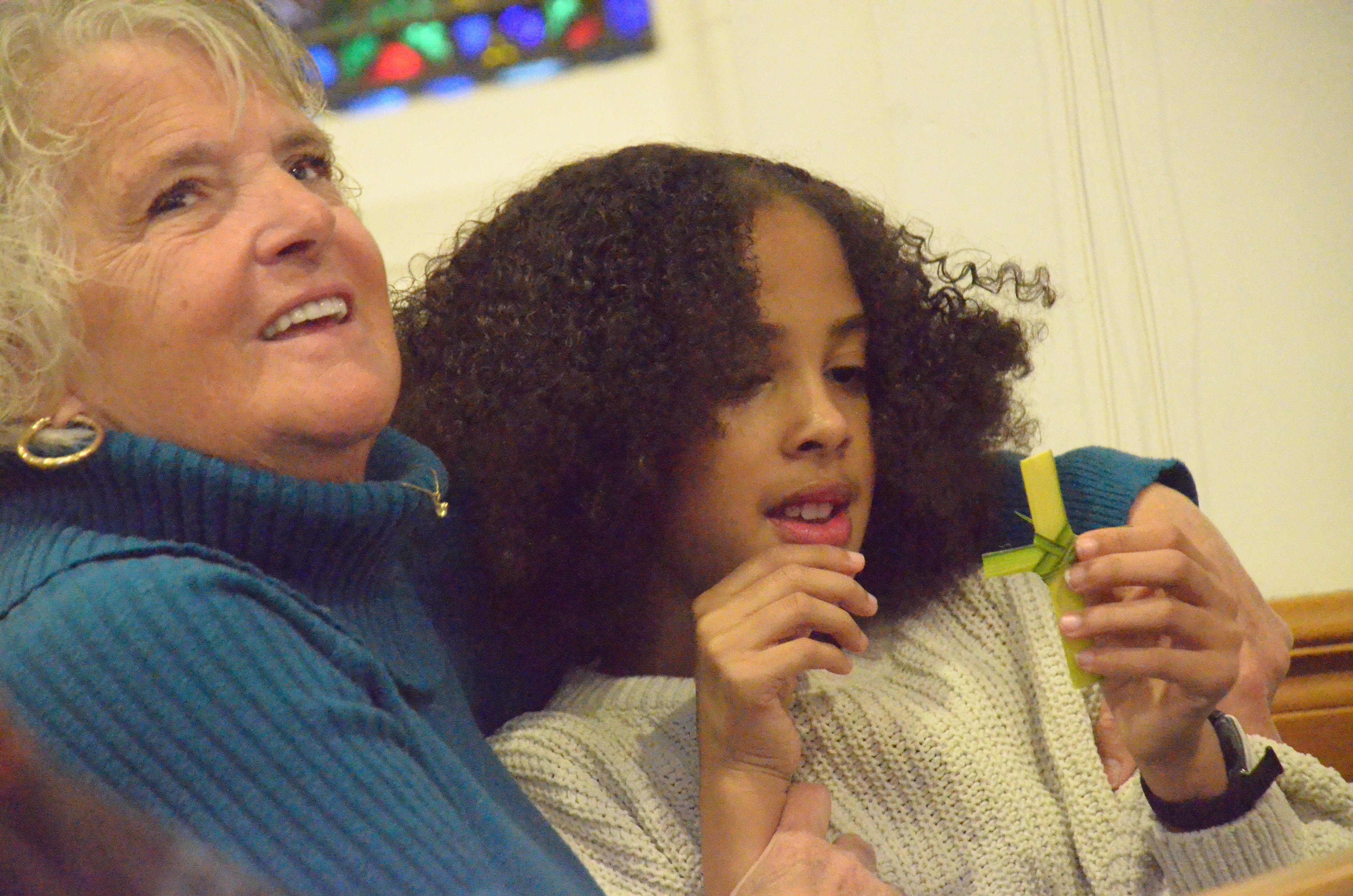 Al Benson took this photo of Joan Biltgen, of Oswego, and her granddaughter, Hannah Scott, who is holding a cross she made from a palm frond on Palm Sunday.