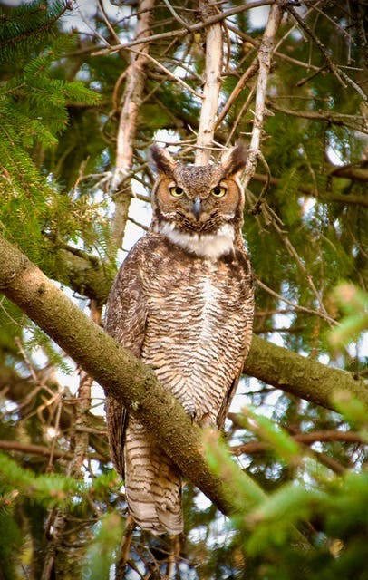 Laura Hutton photographed this Great Horned owl in north Naperville. "We are fortunate to have had several GHOs in our neighborhood over the past several years. All the neighbors enjoy hearing them and, on occasion, seeing them. They are great at blending into the trees," Hutton tells Patch.