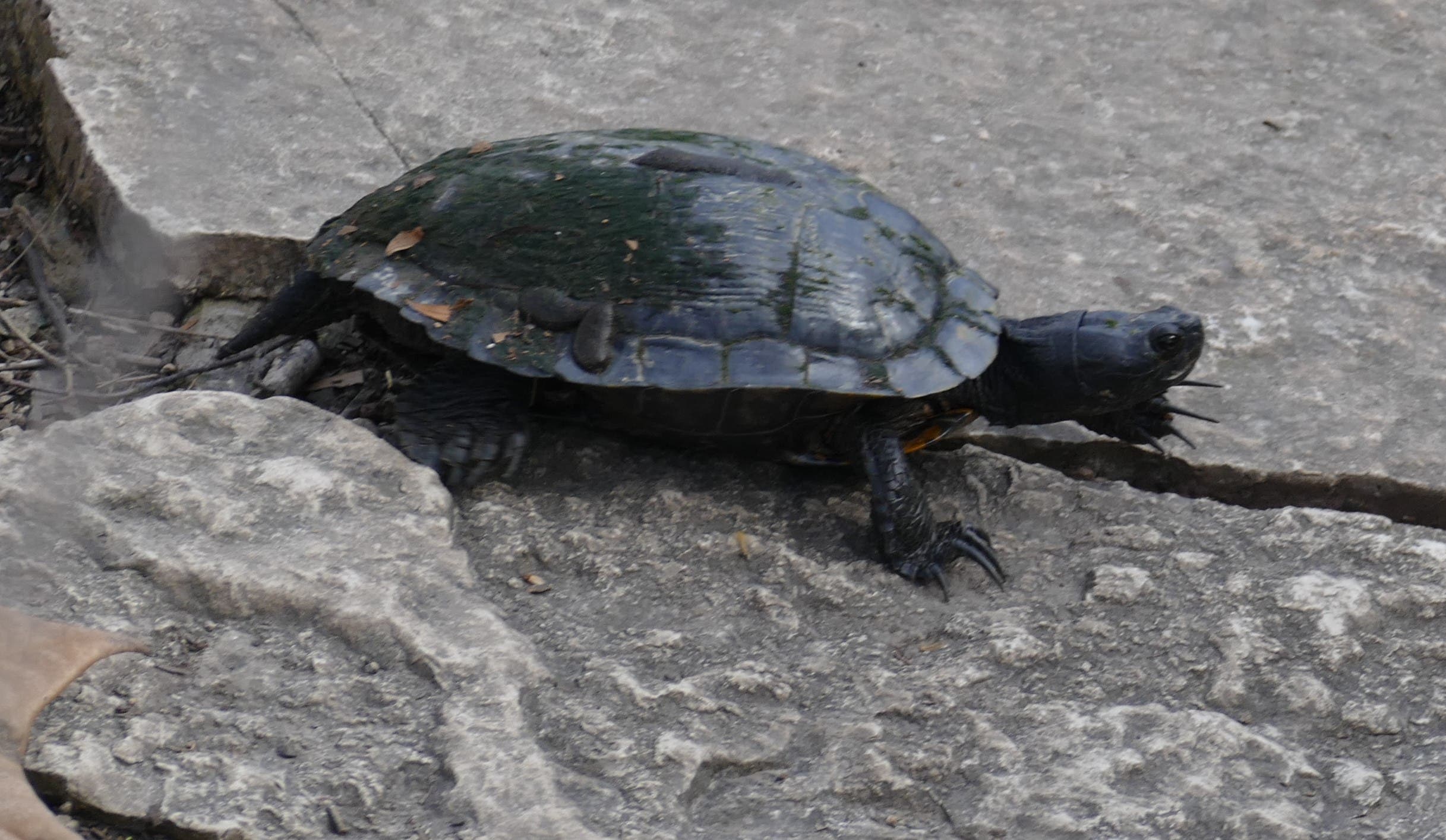 Marianne Myrick took this photo of a turtle at the Morton Arboretum. She tells us, "it is unusual to see a turtle on the rocks below the spillway at Lake Marmo. It fell into the stream and disappeared."