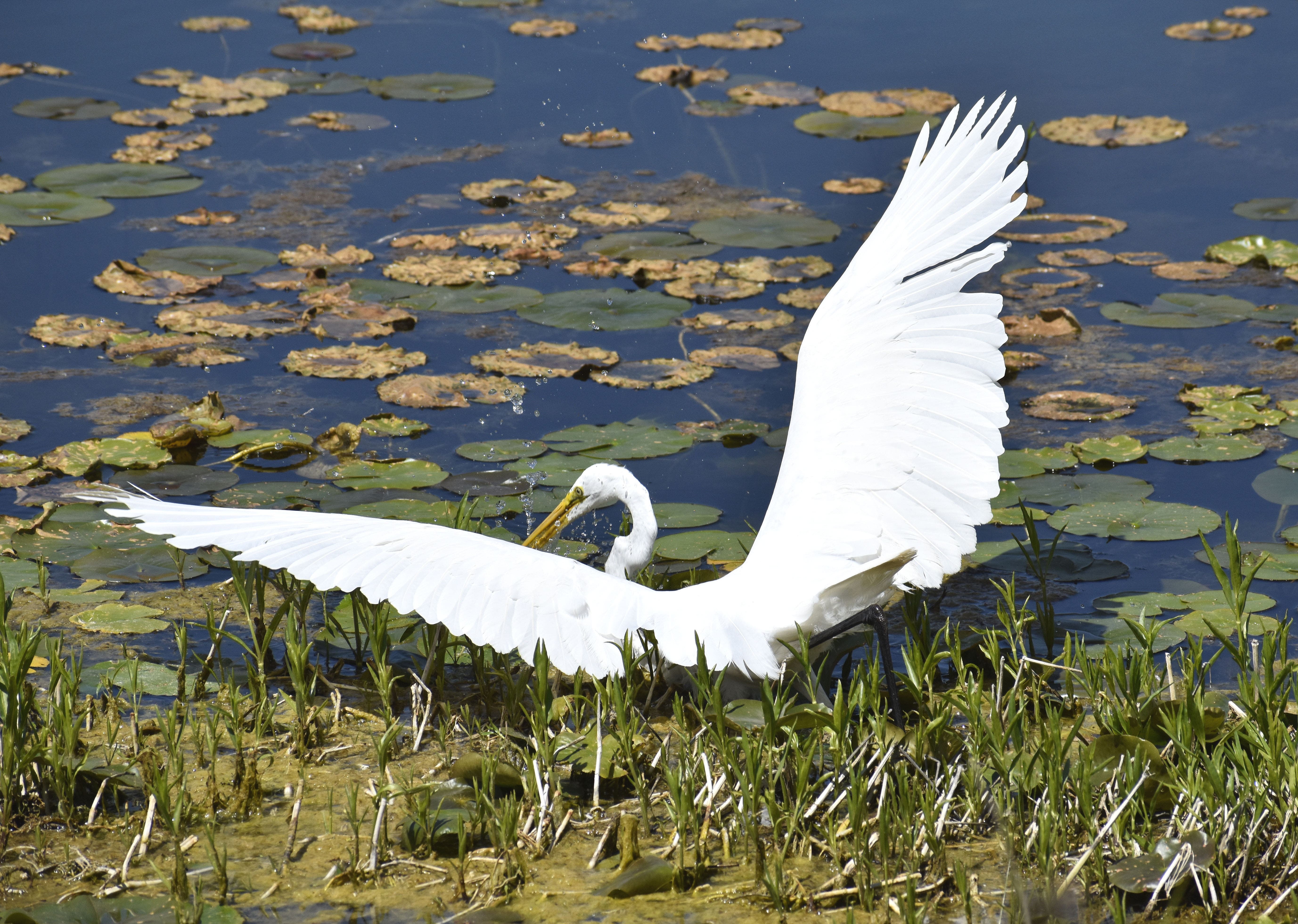 Kathleen Brant photographed this great egret at the Morton Arboretum in Lisle. "The great egret was just taking off from the water because a red-winged blackbird was dive-bombing him/her. Apparently there was a nest in the area," Brant said.