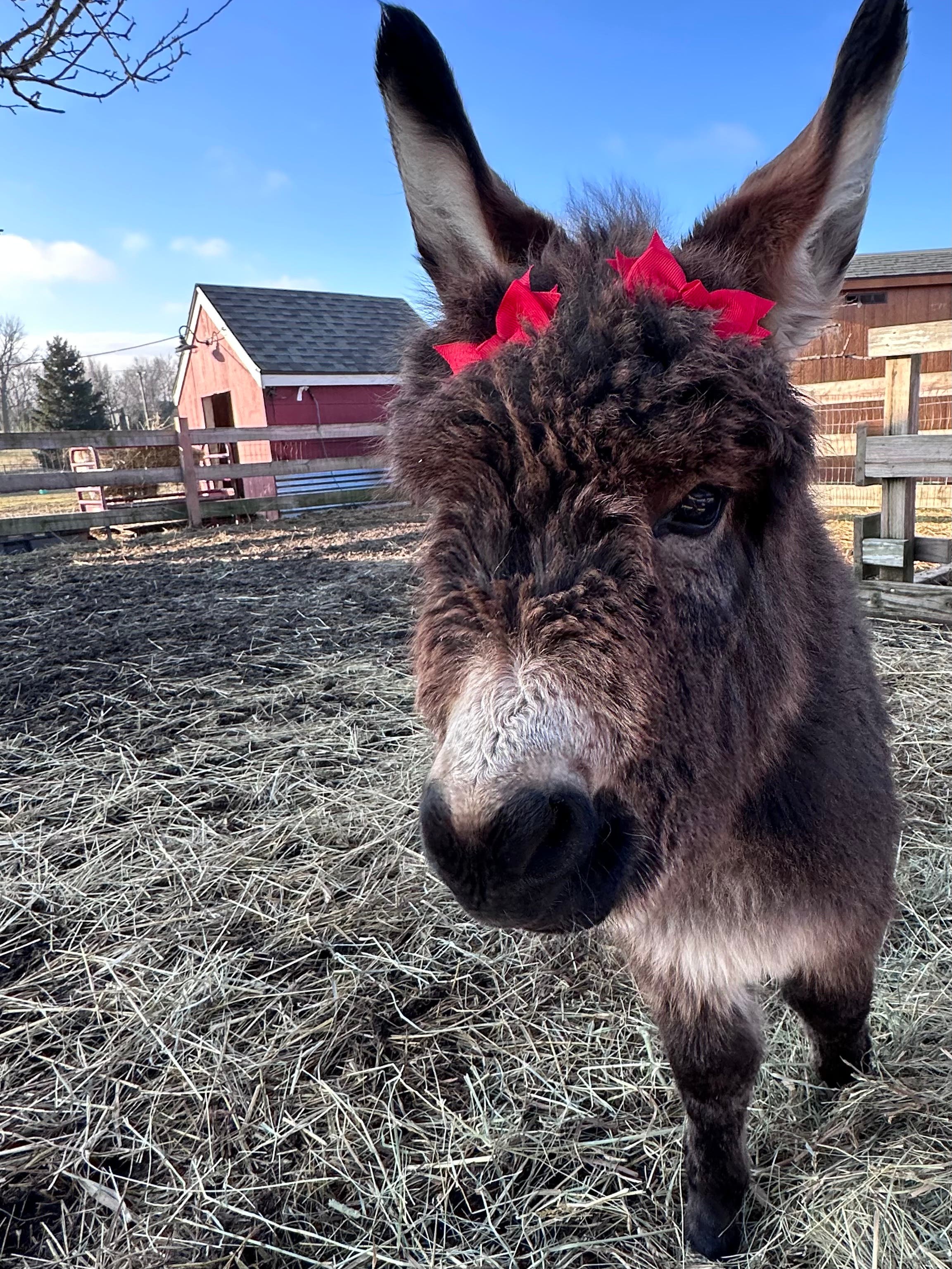 Christine Brenzek tells us her donkey had a baby, named Jolene or "Jo," seen here wearing her Christmas bows.