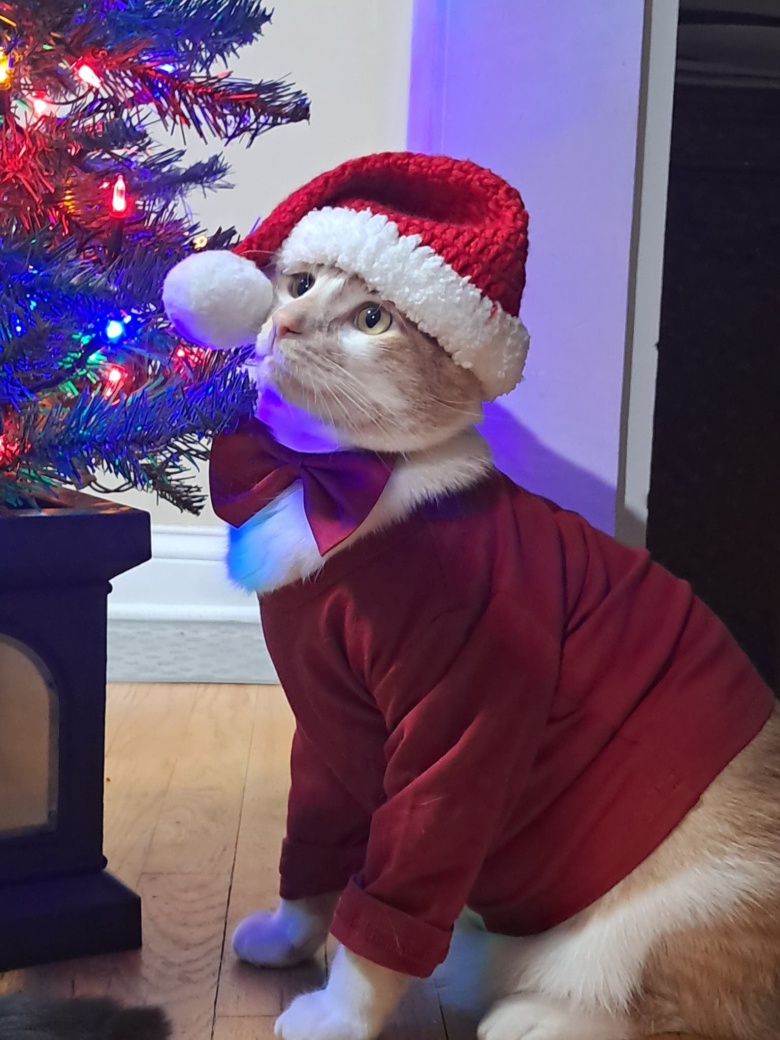 Peter Cherr photographed Mochi, posing here with Santa, at their home in Evanston.