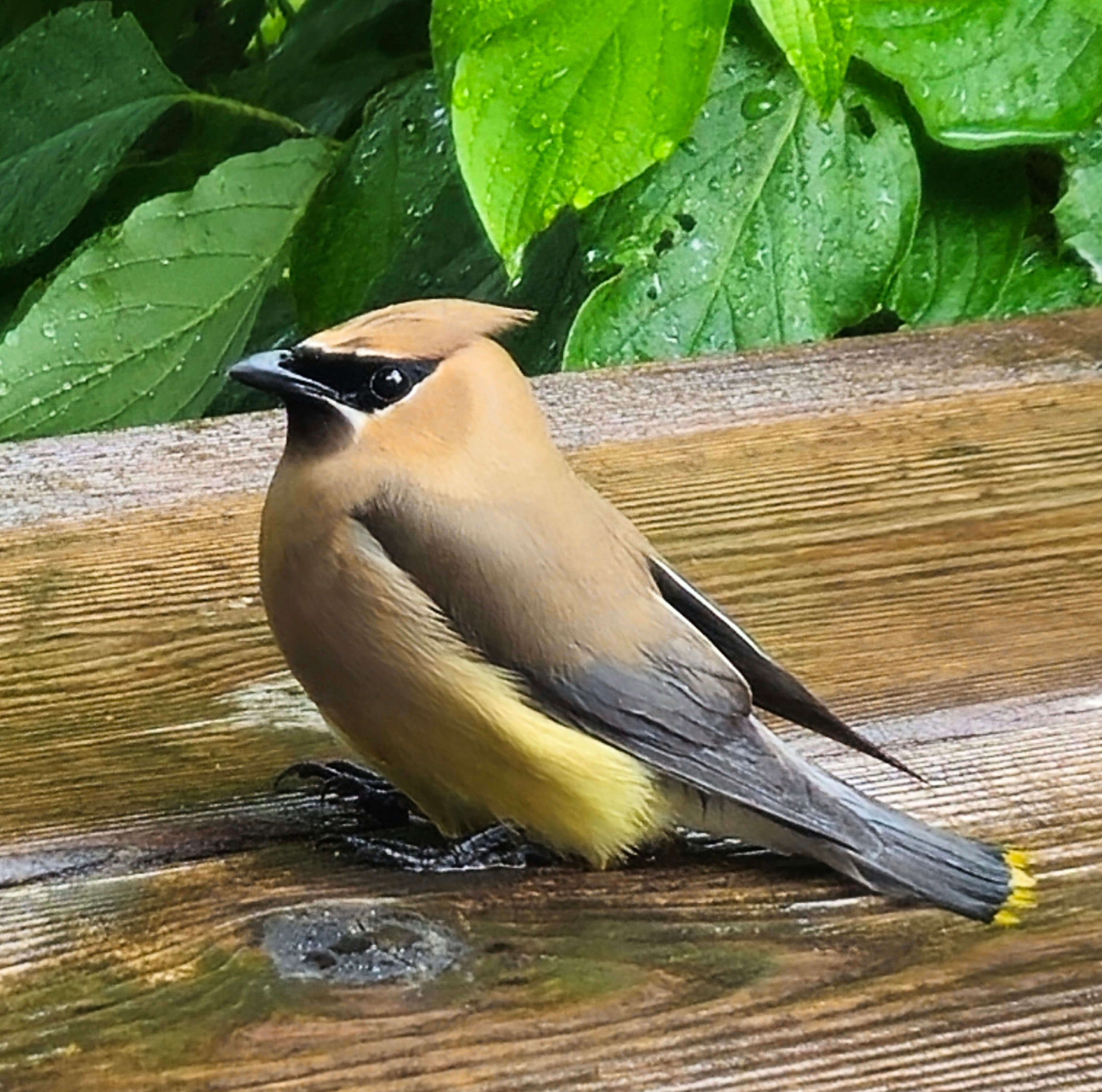 Gilda Birman, of Buffalo Grove, submitted this photo of a cedar waxwing that had landed on their backyard deck during a recent morning.