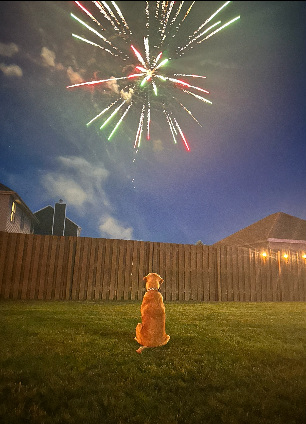 Brian LeRoy, of Diamond, sent in this photo he took of Zephyr, 8 months old, enjoying the Fourth of July fireworks.