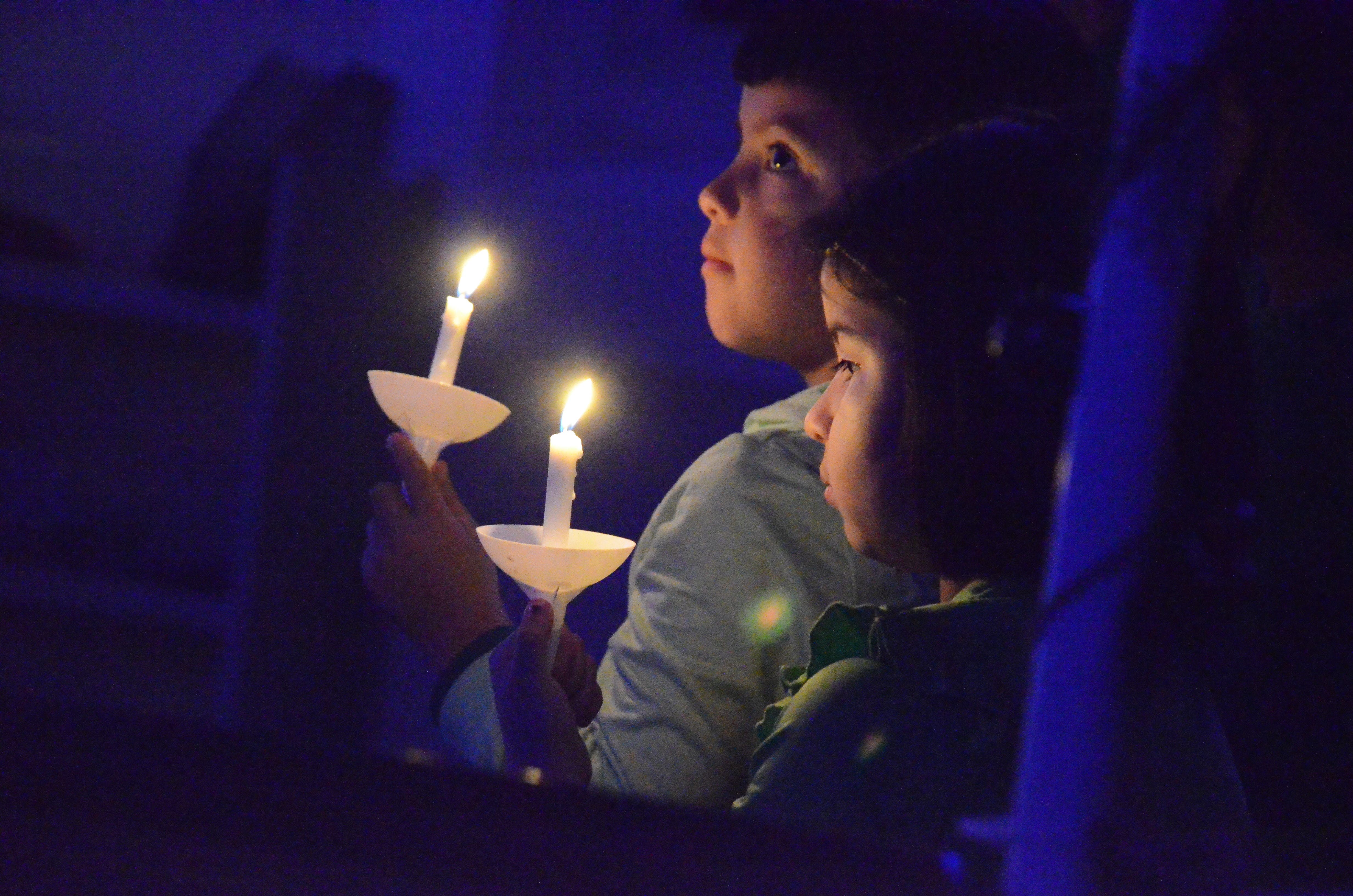 Al Benson, of Aurora, photographed Luli and Inti Smith, with lit candles on Christmas Eve last month at Wesley United Methodist Church in Aurora.