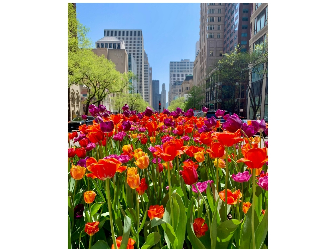 In May, Kathleen Bovid photographed this wonderful image of tulips on Michigan Avenue in Chicago.