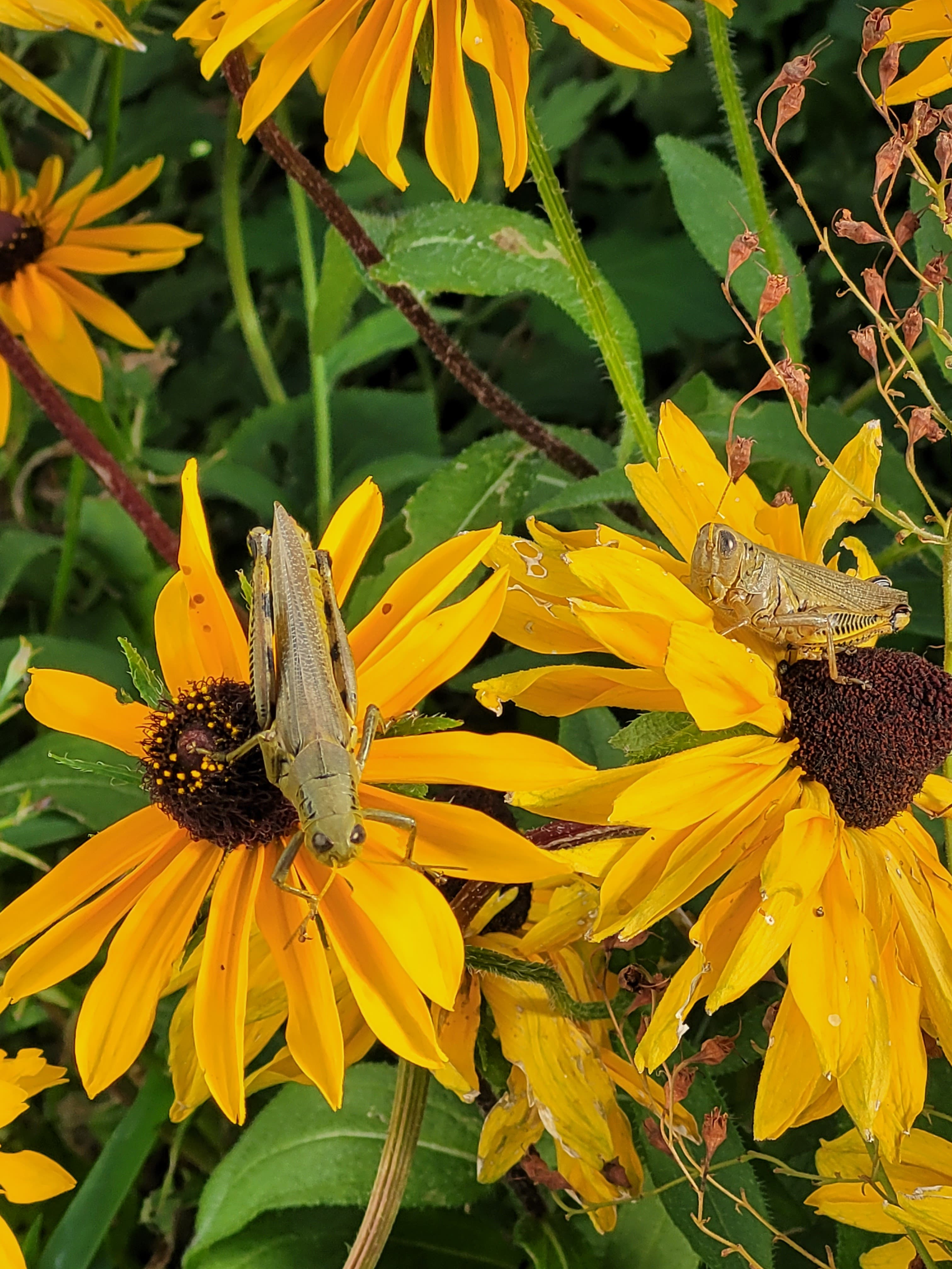 Karen Johnson, of Bridgeview, sent in this photo she took of grasshoppers hanging out on some black eyed susan in her yard.