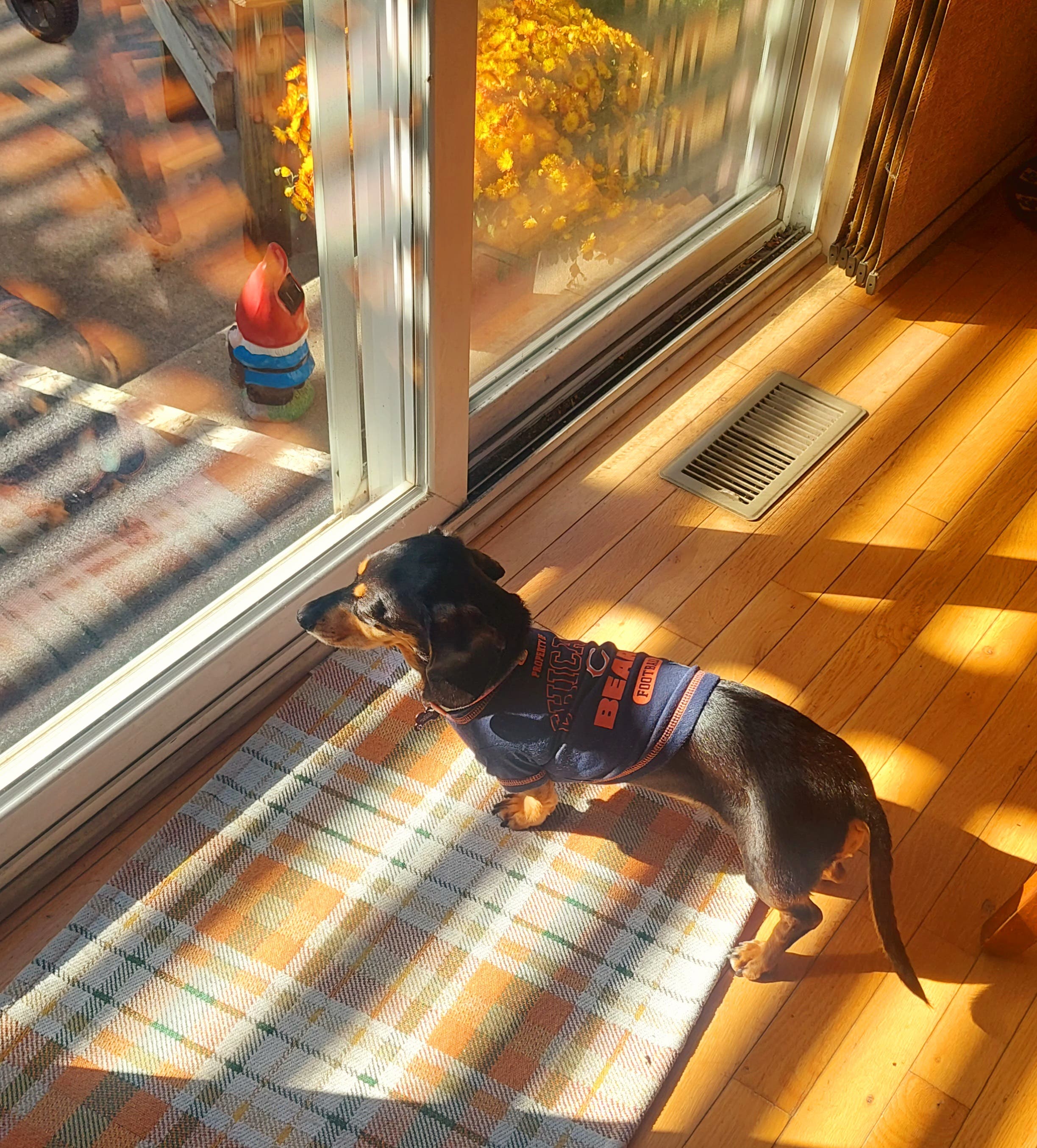 Leanne Buhr, of Shorewood, sent in this photo she took of her dog, Heidi, enjoying the sunshine on a beautiful Fall Day. "I love the way the sun matches the pattern of the fall rug, and the beautiful mum outside of the window."