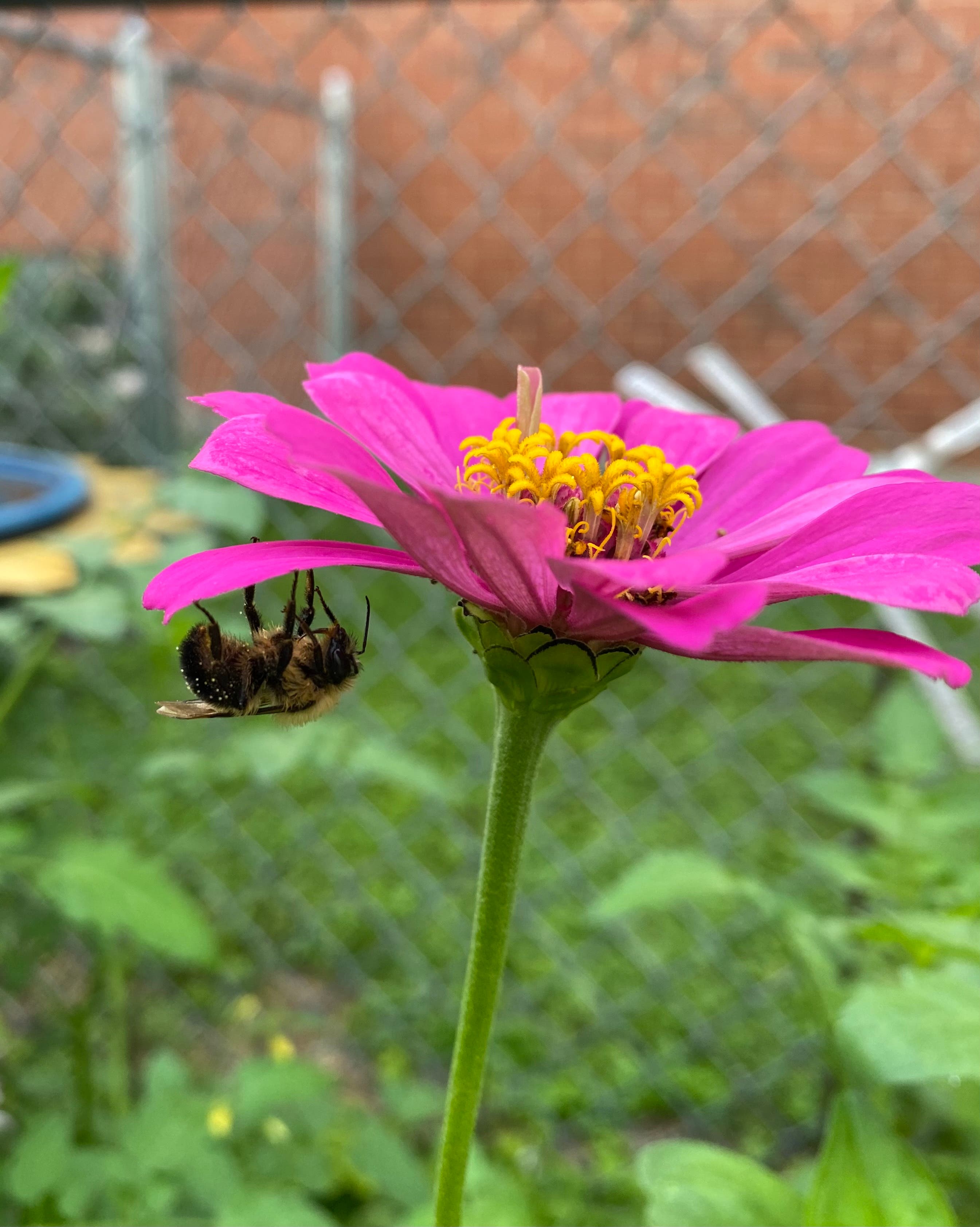 Liz Mizzy said this bee was napping on a zinnia flower in the early morning hours in Brookfield.